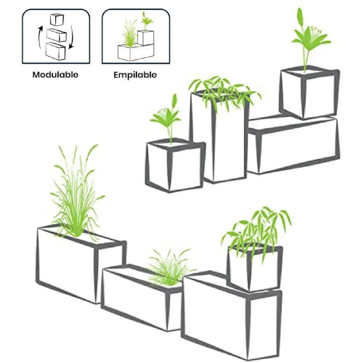 Joli pot carré avec zone de rétention d'eau pour mettre en avant votre plus belle plante.
