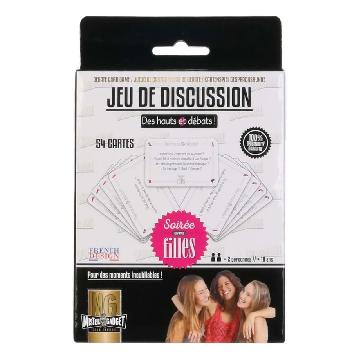 Commentaire vendeur : Informations Techniques : Dimensions : L. 8,5 x l. 0,1 x H. 5,3 cm Matière : Papier Spécificités : Pratique & Utile Jeu de Débat Spécial Filles Contient 55 Cartes Facile d'entretien & d'utilisation Couleur : Rose & Blanc