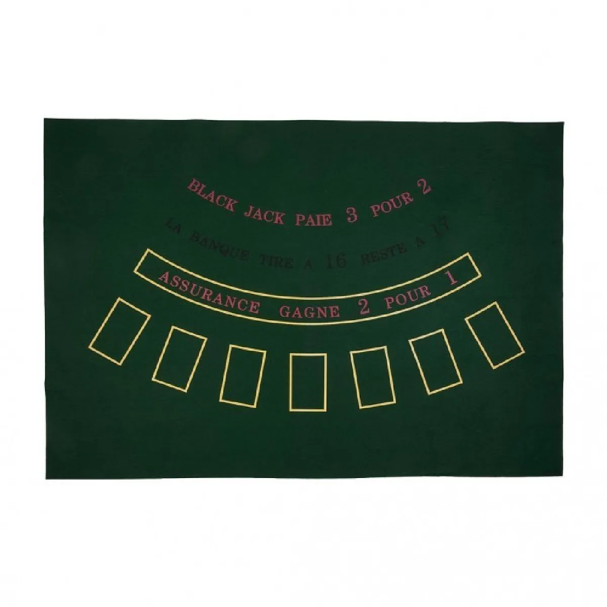 Tapis de carte avec l'empreinte du jeu de black-Jack vert feutré , Ce tapis de jeux à une dimension de 130 cm x 90 cm