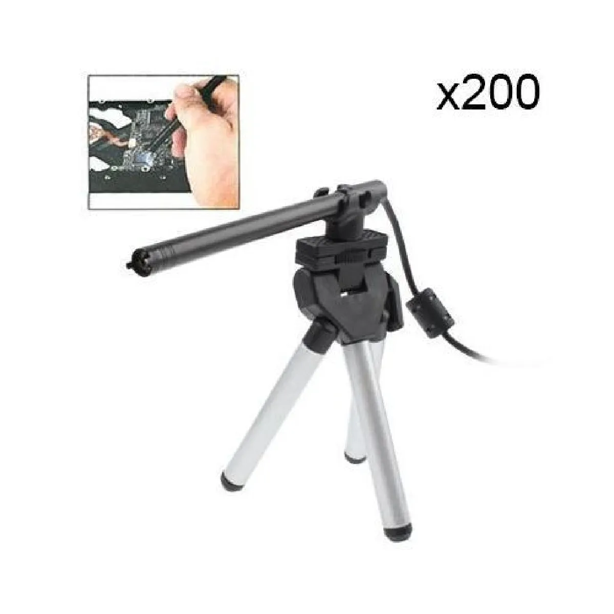 Ce mini microscope électronique portable dispose d'un zoom x200 qui vous assurera une minutie exceptionnelle lors de son utilisation. Sa forme très fine (seulement 7mm de diamètre) peut également servir d'endoscope pour les personnes souhaitant l'utiliser pour contrôler un circuit imprimé par exemple ou tout autre composant technologique.