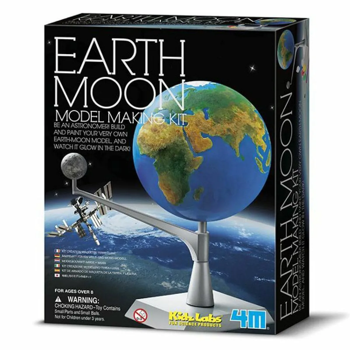 Kit éducatif 4M Kidzlabs Terre et lune. Construisez votre propre maquette Terre – Lune pour en apprendre plus sur l'espace grâce à ce kit de modélisme. Impressionnez vos amis et votre famille en exposant votre maquette dans votre chambre : laissez-là se charger de la lumière le jour et briller la nuit ! Les phénomènes d'éclipse n'auront plus de secrets pour vous. Ce kit de fabrication contient : ensemble 3D terre et lune, un support, un bras articulé, de la peinture fluorescente, une brosse et un guide détaillé pour réaliser des éclipses solaires et de Lune. Dimensions boîte : 22 x 17 x 6 cm. Âge à partir de : 8 ans.
