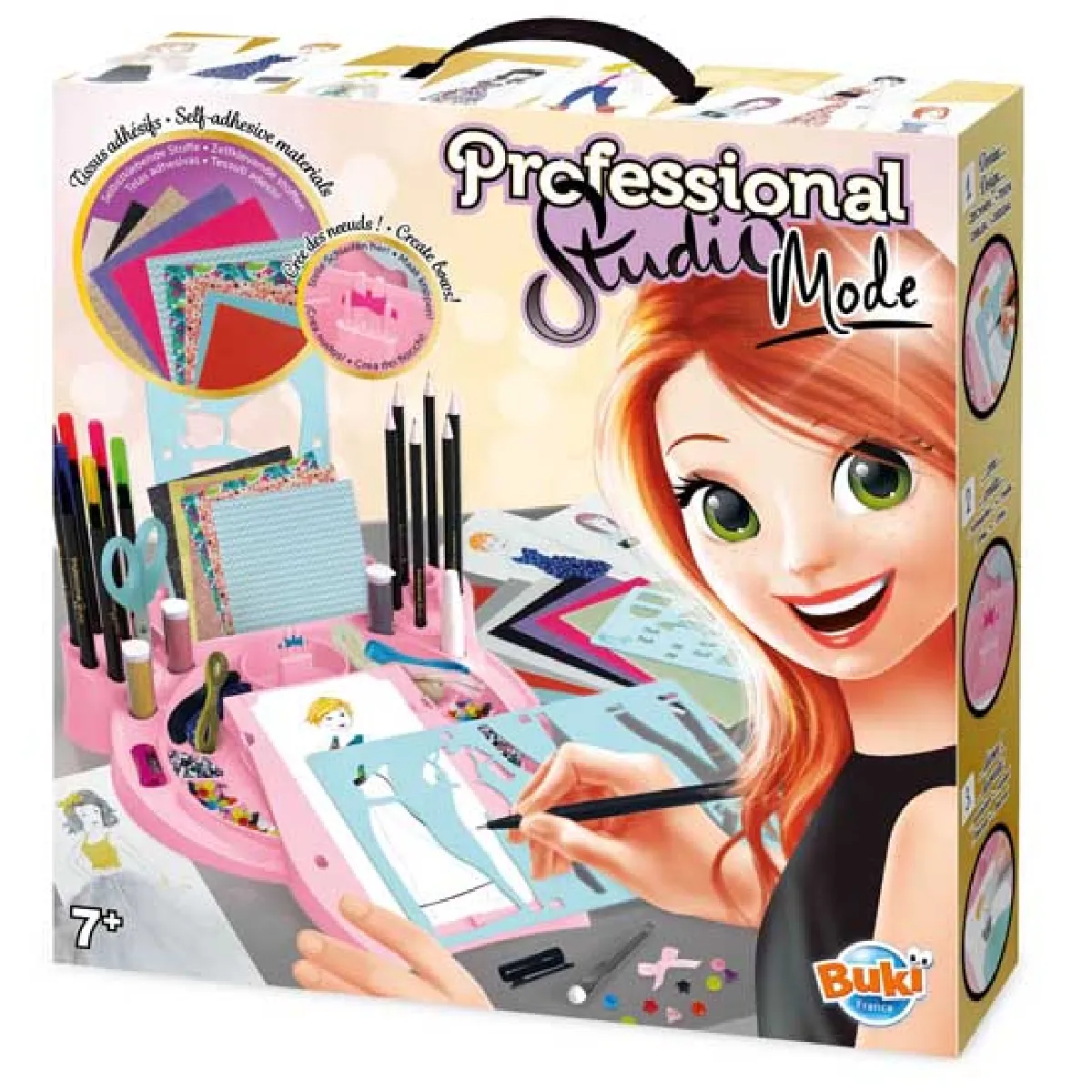 Commentaire vendeur : Place ta silhouette, dessine les tenues avec les pochoirs et donne leur du volume grâce aux nombreux accessoires inclus : tissu adhésif, plumes, paillettes, feutrine, rubans, feutres, crayons de couleurs aquarellables, ciseaux, taille-crayon. Inspire-toi du portfolio pour créer tes propres tenues tendances ! Âge : 7+.Cet article ne convient pas aux enfants de moins de 3 ans.Age minimum recommandé : 6 ansAge maximum recommandé : 12 ans