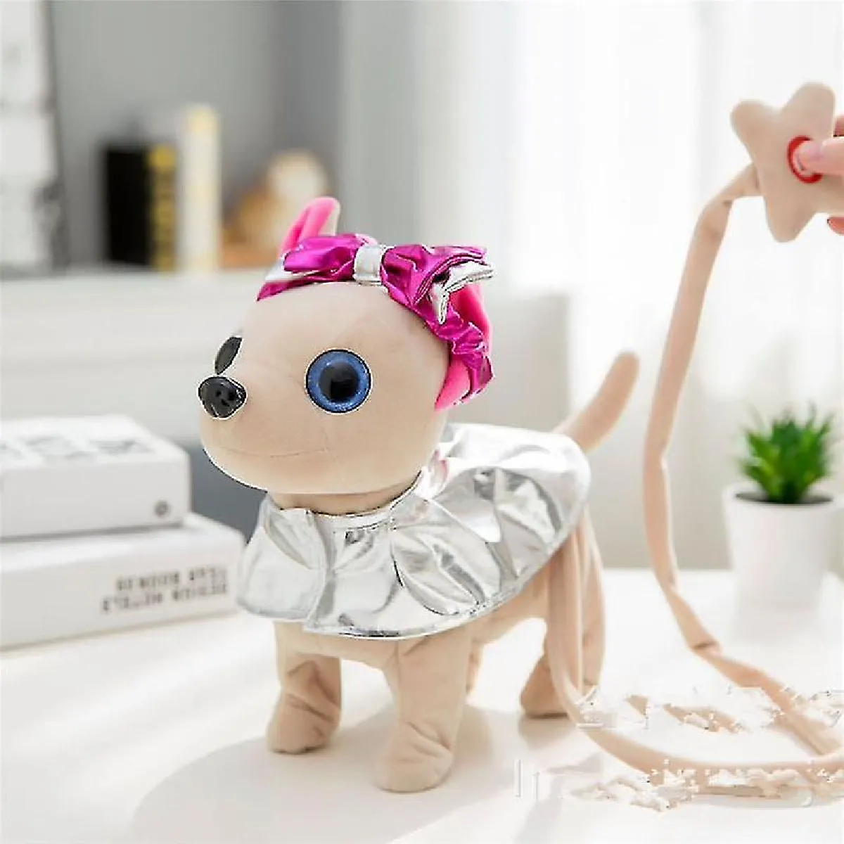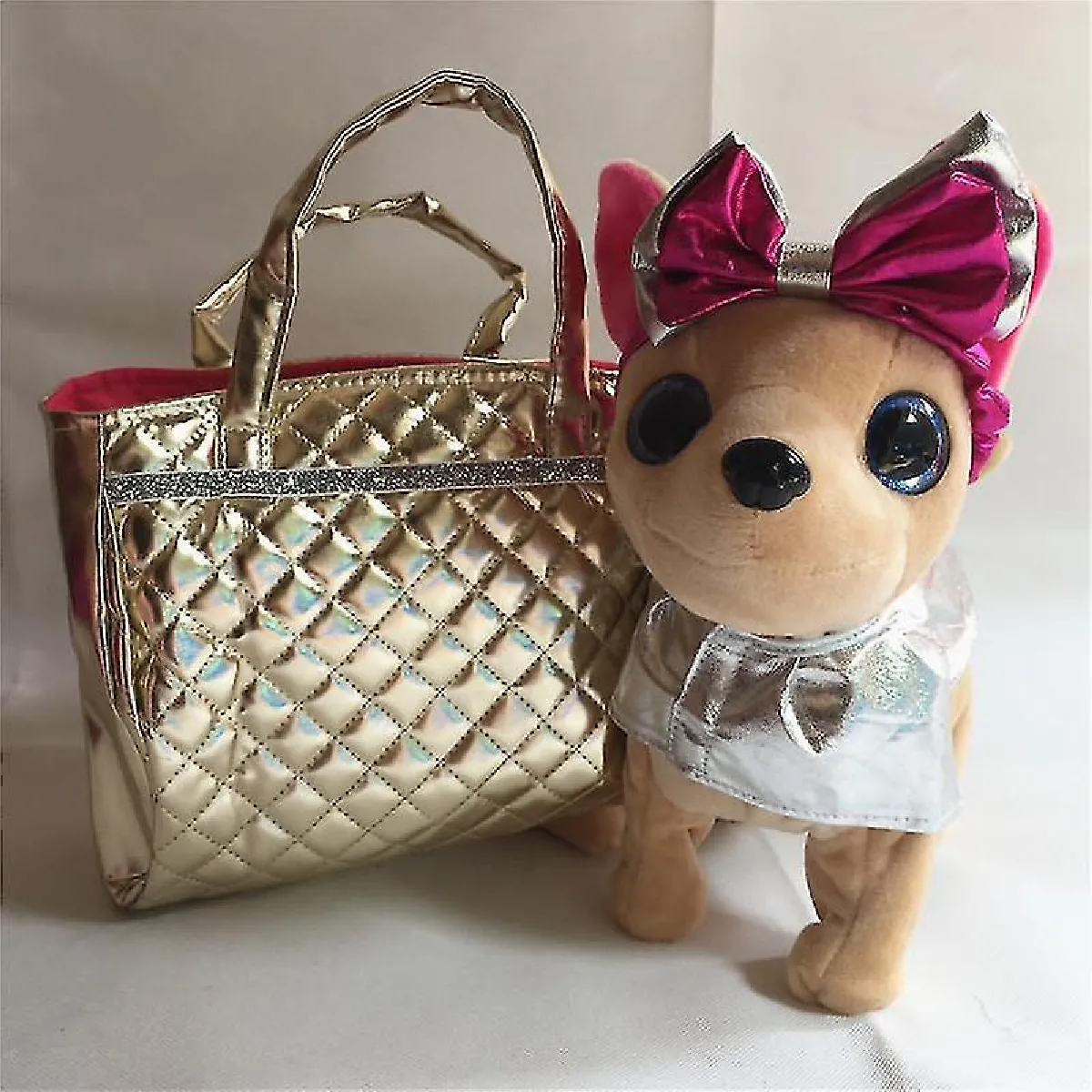 Pet électronique Chi Chi Robot chien en peluche en peluche Animaux marchant en chantant un jouet de chien interactif avec sac pour enfants anniversaire pour enfants | Electronic PetScolorsilverPower Supply :: 3aa (non inclus) Style de produit: SingingWalking (chaque chien avec un sac)