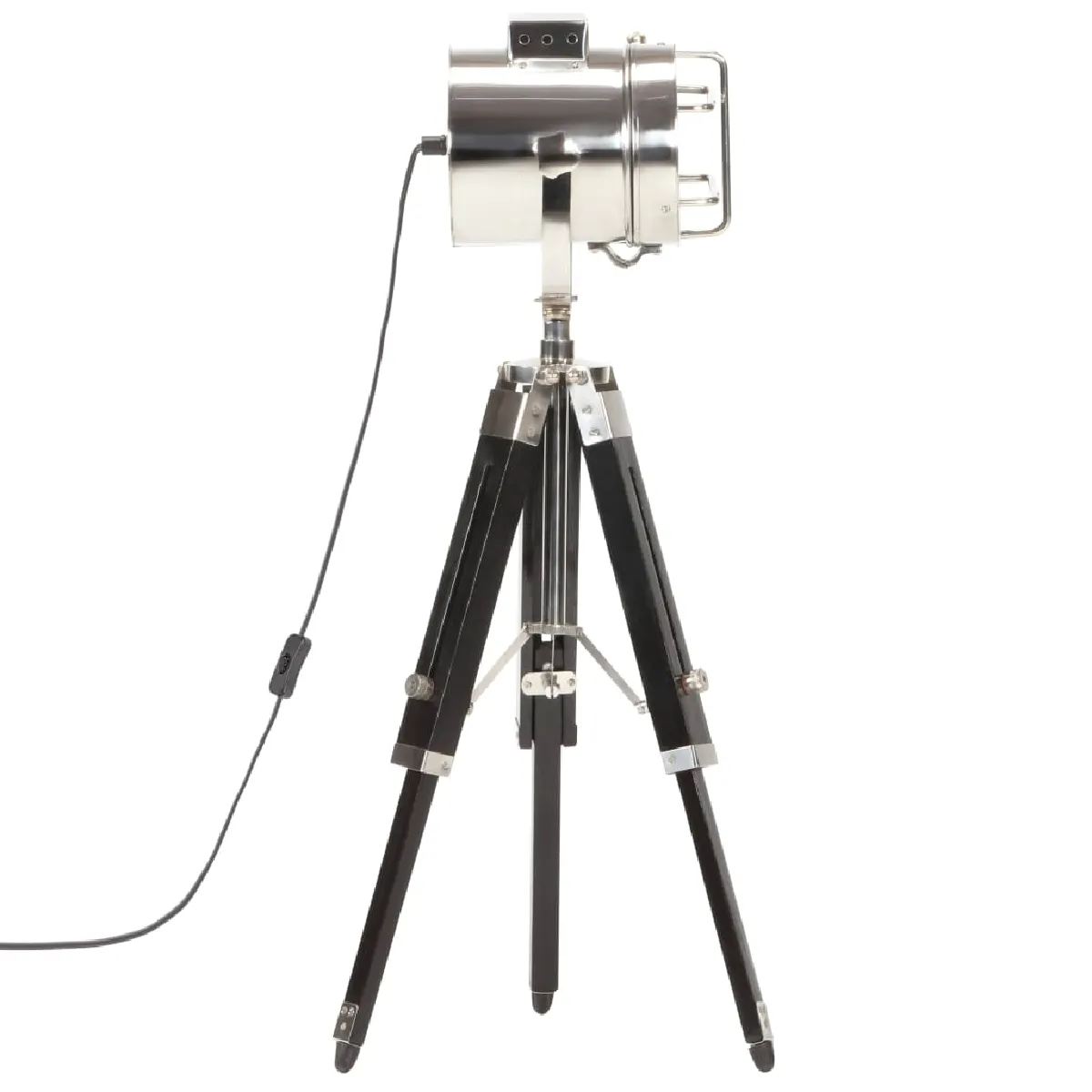 L'abat-jour en acier basculant et pivotant, avec une finition argentée, diffuse une lumière chaude et atmosphérique. Les pieds robustes sont fabriqués en bois de manguier massif avec une finition noire, ce qui garantit un support sûr. De plus, la hauteur peut être ajustée de 55 cm à 69 cm selon vos besoins. La lampe Hollywood est facile à assembler.