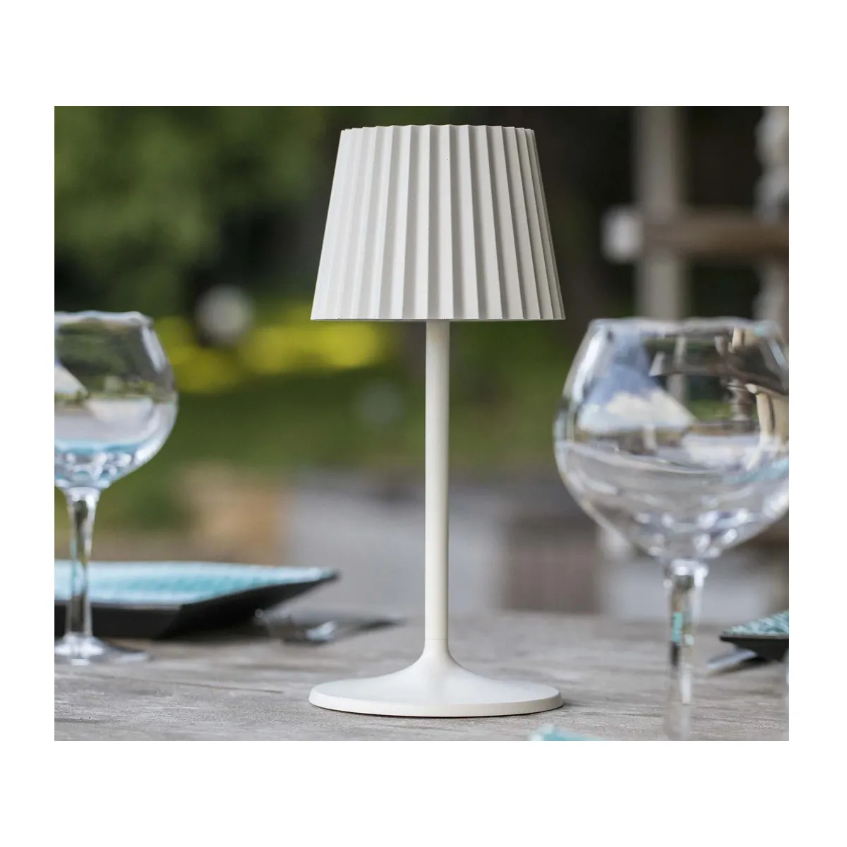 Dinez tranquillement sur la terrasse même à la tombée de la nuit grâce à cette lampe de table sans fil Abby de Lumisky !