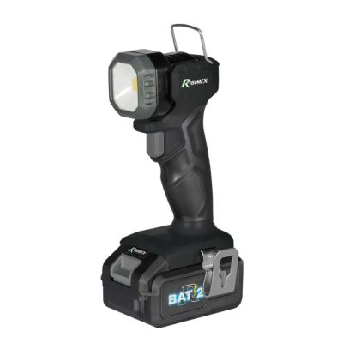 Torche 10W a batterie R-BAT 20. Inclinable a 90° avec 3 modes d eclairage (500 lumen - 1000 lumen - flash) Livre avec : - Batterie Li-Ion 20 V - 2 Ah - Chargeur 100-240 V~50 Hz / 21 V avec temoin de charge Batterie 4,0 Ah et chargeur rapide en option. Chaque batterie s installe sur n importe quel outil de la gamme.