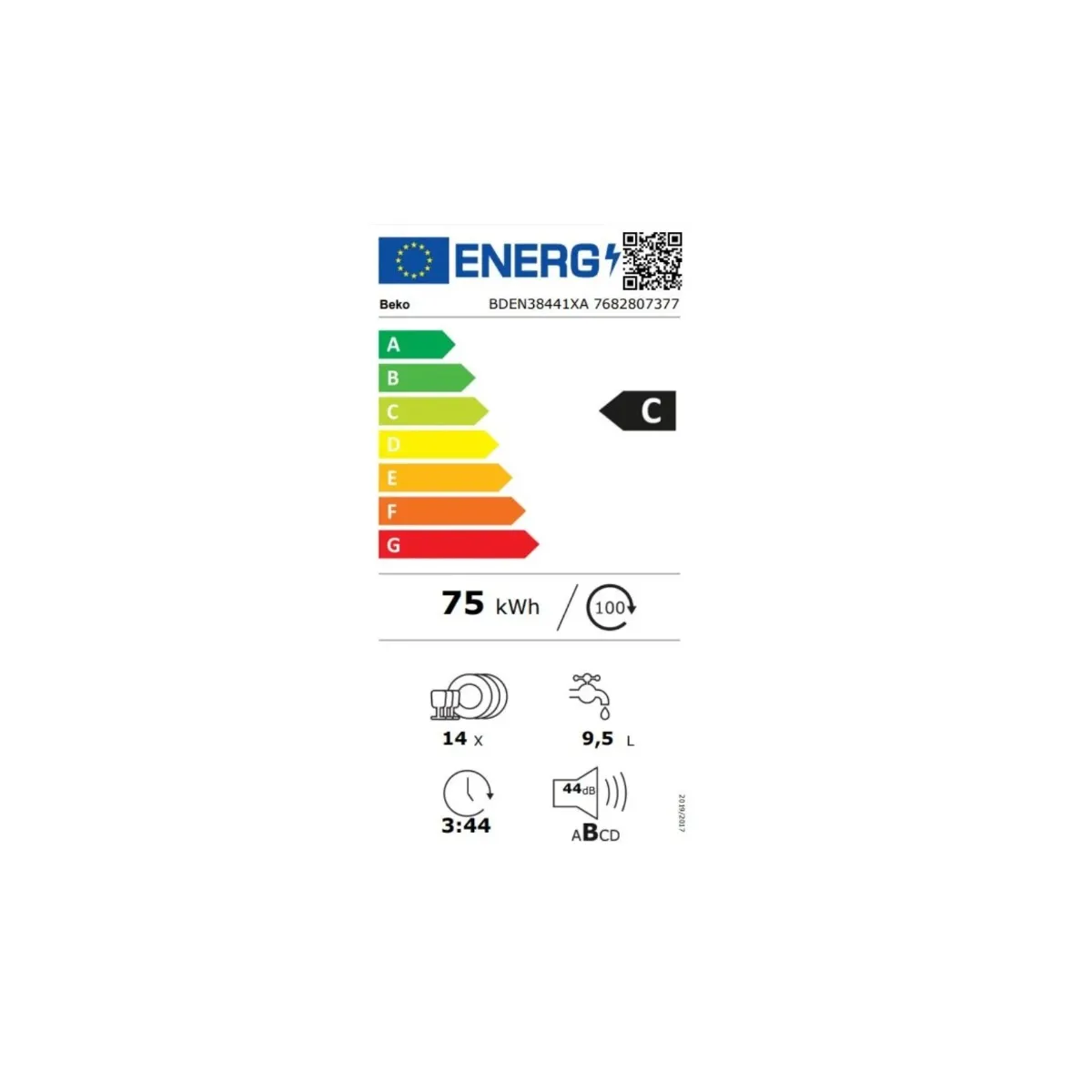 - Niveau sonore : 44 dB (classe d'émission sonore B)
