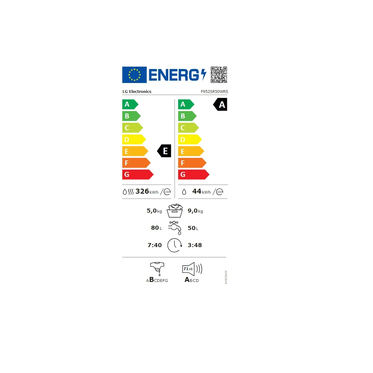 - Niveaux sonores : lavage indiqué, 71 dB en essorage