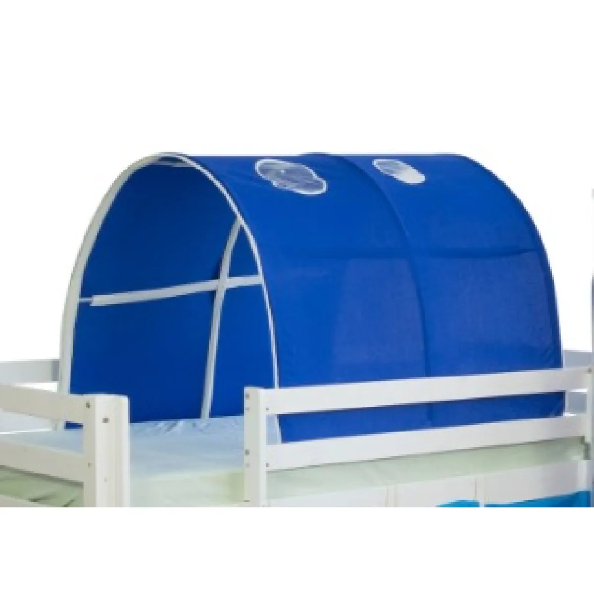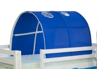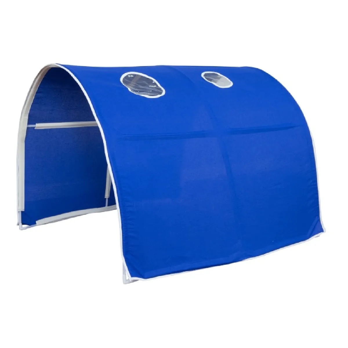 La mise en place est directe : les éléments s'emboîtent pour composer la structure, puis le tissu se fixe sur l'armature afin d'obtenir un abri textile homogène et visuellement cohérent. La couleur bleue participe à une ambiance sereine compatible avec les rituels du coucher. Sans roulettes et pensé pour rester en place, le tunnel reste stable durant la nuit. La présence d'un ciel de lit inclus complète l'effet enveloppant pour créer une zone de repos identifiable, tout en laissant circuler l'air pour le confort de l'enfant.