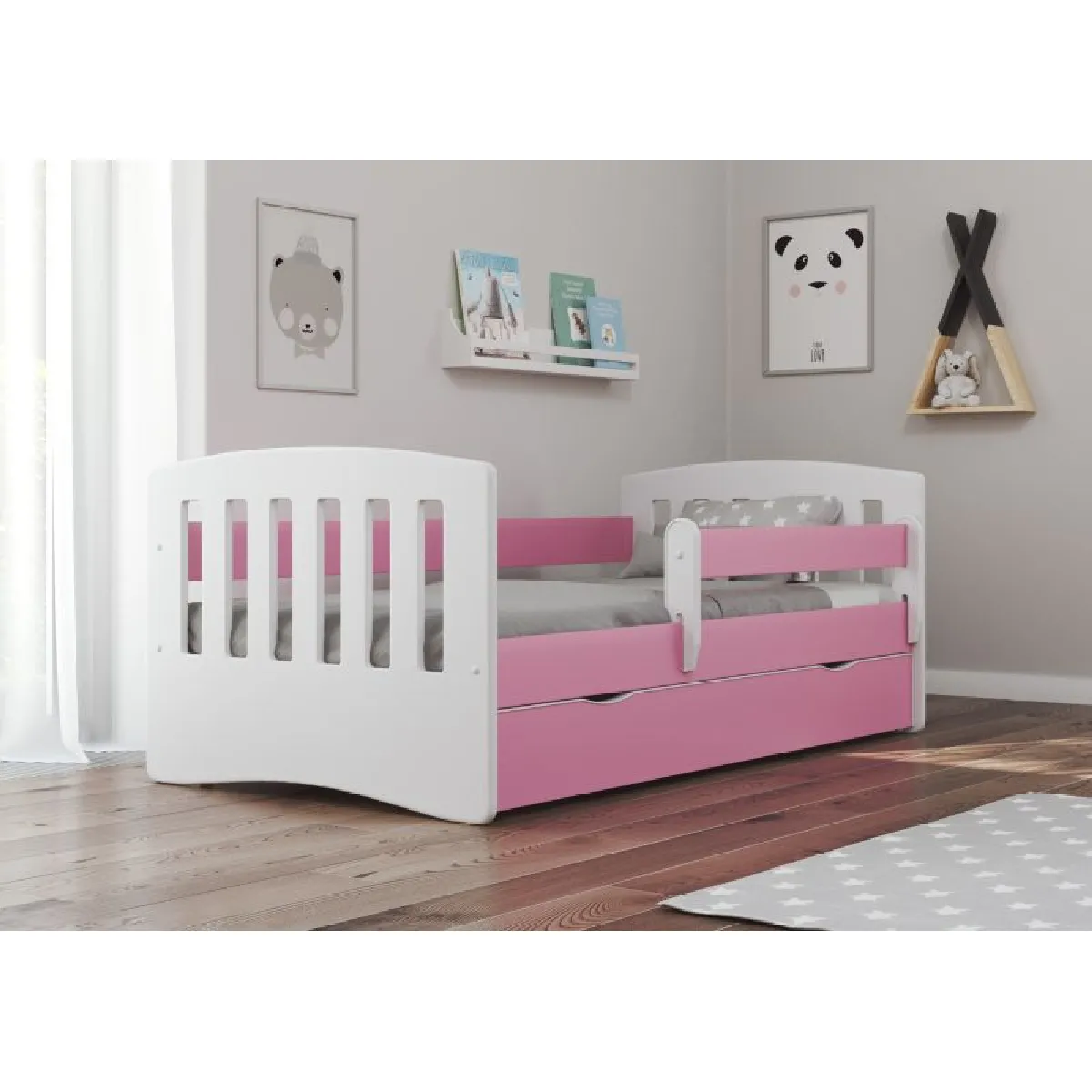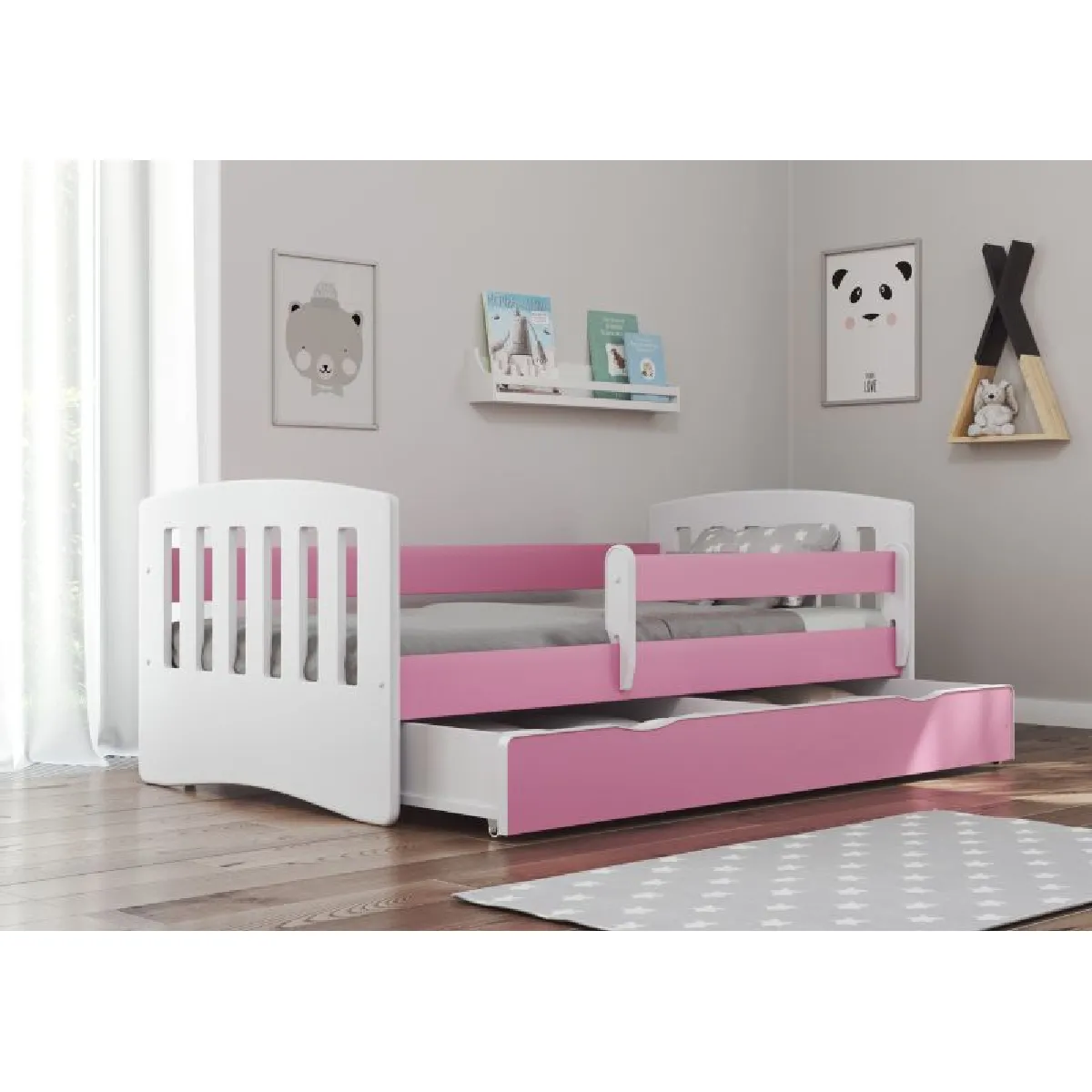 Lit enfant avec barrière - Rose