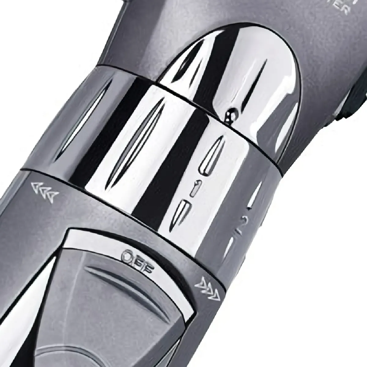 La lame en céramique se distingue par sa résistance durable et sa glisse régulière, limitant les accrocs et favorisant une coupe homogène. Le réglulateur intégré dans la poignée offre 5 positions de 4 à 30 mm pour ajuster la longueur sans changer d'accessoire. Cette plage couvre l'entretien de la barbe courte, les dégradés progressifs et la coupe des cheveux à domicile. L'appareil assure une finition propre sur la tête, la barbe et le corps, en s'adaptant à des besoins variés avec la même tête de coupe.