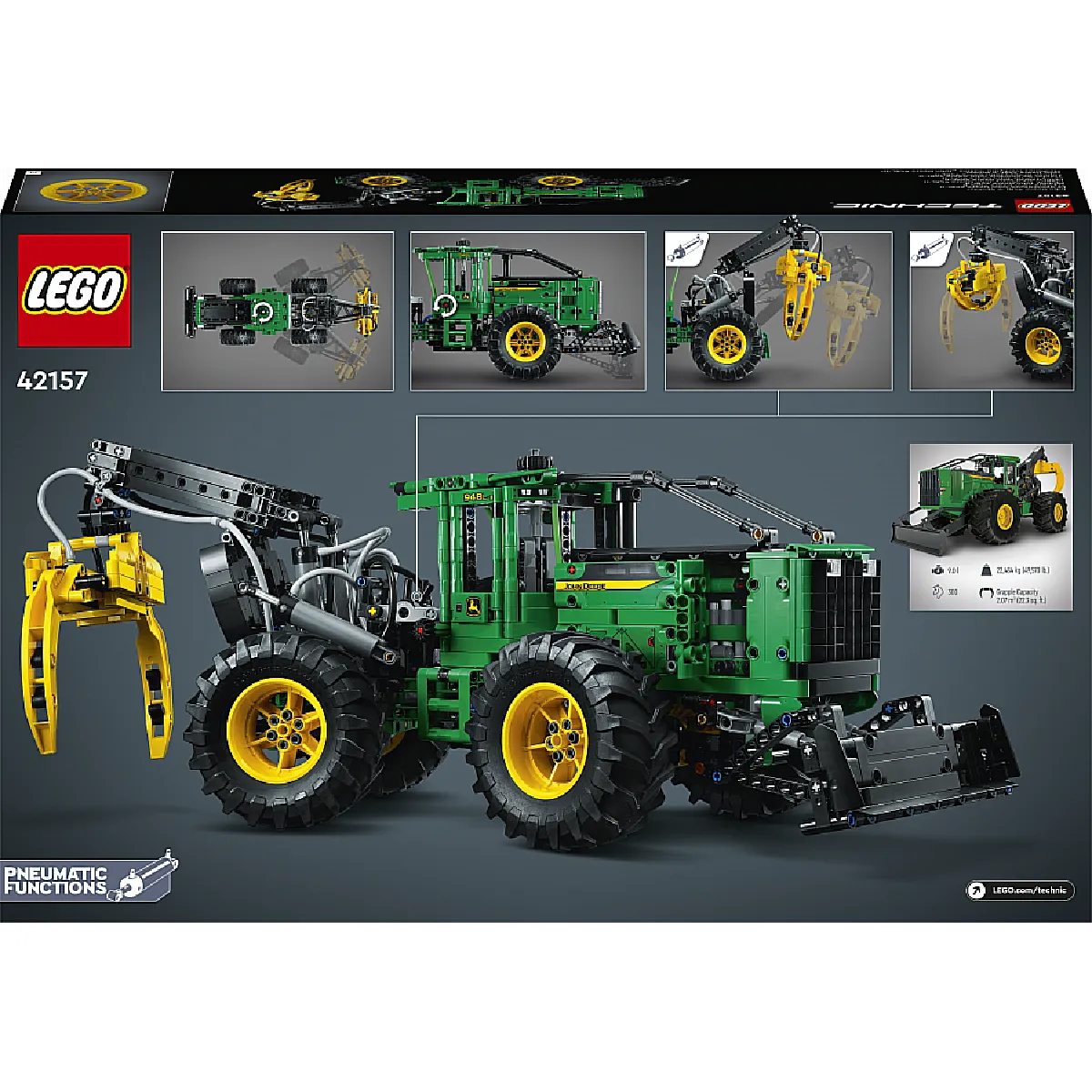 La reproduction LEGO Technic met en valeur la débardeuse John Deere 948L-II avec direction et 4 roues motrices pour une manipulation précise lors du jeu. Les constructeurs de 11 ans et plus découvrent un moteur qui tourne et des mécanismes réalistes, afin de comprendre le rôle de chaque sous-ensemble. Le système pneumatique intégré permet d'actionner les 3 mouvements de la pince et la lame pour simuler les opérations de débardage. Le siège est monté sur une base pivotante, ce qui facilite l'orientation dans toutes les situations de manuvre.