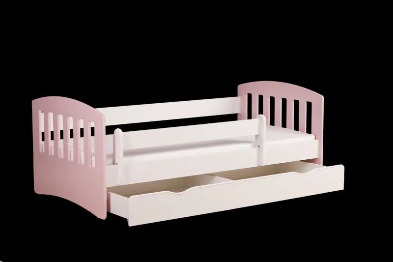 Lit bébé classique rose poudre avec sommier FLEX et barrière amovible