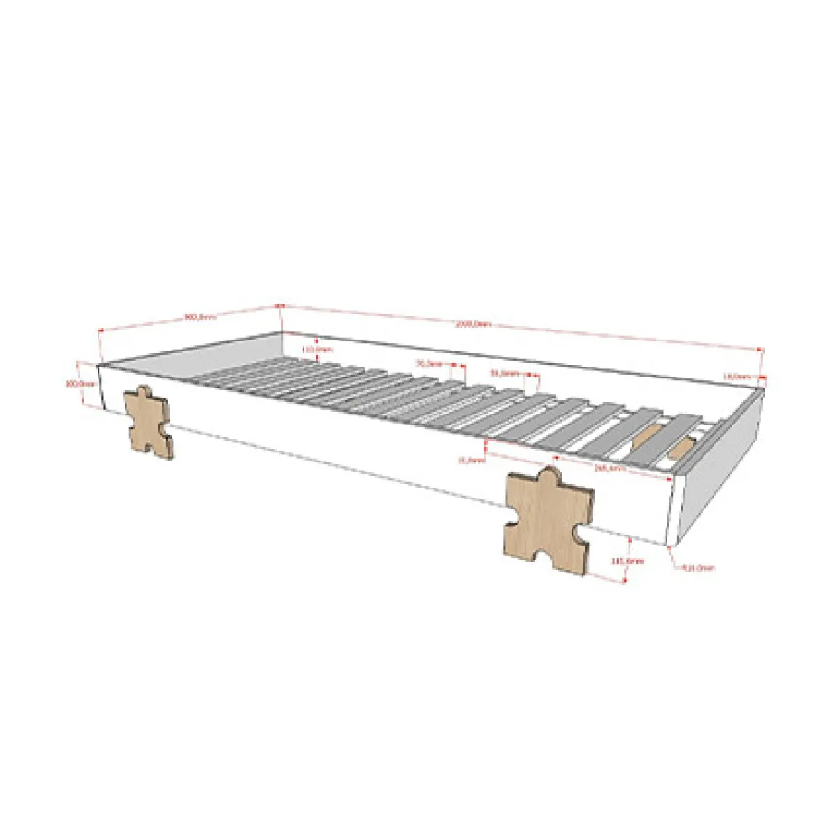 Sommier empilable - Motif puzzle - Bois FSC - Dimensions 203,6 x 27,5 x 97,6 cm