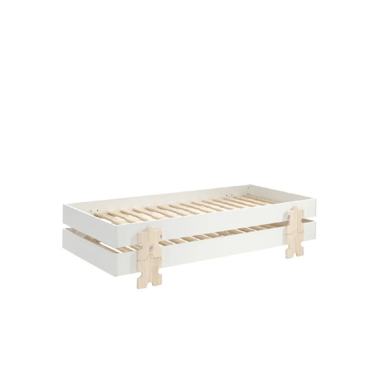 Ajoutez une touche plus ergonomique à la chambre de vos enfants avec ce lot de 2 sommiers empilables blancs à motifs puzzle. Pour faciliter le rangement de la pièce à coucher, les deux spécimens ont été fabriqués avec un système d'emboitement. D'une structure robuste en panneaux de particules et pin massif, ils peuvent accueillir une personne de taille moyenne . Le design est fait pour les enfants âgés de plus de quatre ans, il peut donc très bien convenir un adolescent. Certifié FSC, il garantit que le bois utilisé pour ce meuble est issu de forêts gérées durablement.