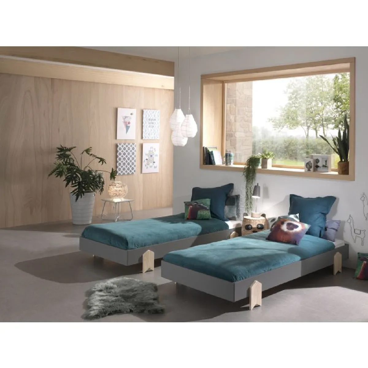 Pour une chambre plus pratique pour vos enfants, installez-y le lot de 2 sommiers empilables gris à motifs flèche. Grâce au design emboitable de ces lits, les empiler offre un gain d'espace et facilite le nettoyage de la pièce. Fait en pin massif, chaque lit est conçu pour supporter le poids d'une personne de taille moyenne. Les parties en panneaux de particules assurent le côté design. Avec ses dimensions et sa forme, il est idéal pour les enfants à partir de quatre ans.