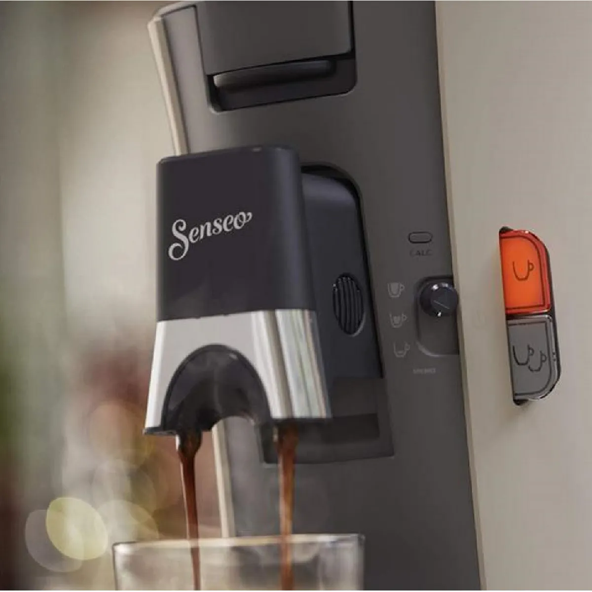 La machine fonctionne avec des dosettes SENSEO, optimisées pour la technologie Booster d'arômes et la distribution fine de l'eau.