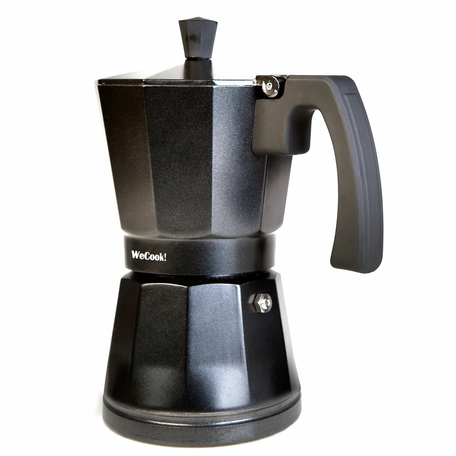 Cafetière italienne (Moka) - Aluminium - Compatible induction, gaz, vitrocéramique, électrique - Poignée bakélite soft touch - Base inox - Soupape sécurité - Filtre permanent - Anti-goutte