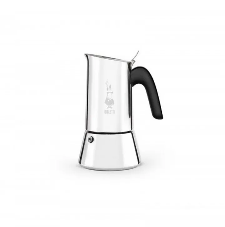 Le nouveau bec a été retravaillé pour offrir une coulée fluide vers la tasse, en améliorant le contrôle au moment du service. La capacité de 0,2 L convient à 4 tasses Moka, pratique pour les pauses café à plusieurs. La compatibilité tous feux, y compris induction, étend les possibilités d'utilisation sur diverses tables de cuisson. Avec un poids d'environ 0,75 kg, l'ensemble reste stable sur la plaque tout en demeurant facile à manipuler au quotidien.