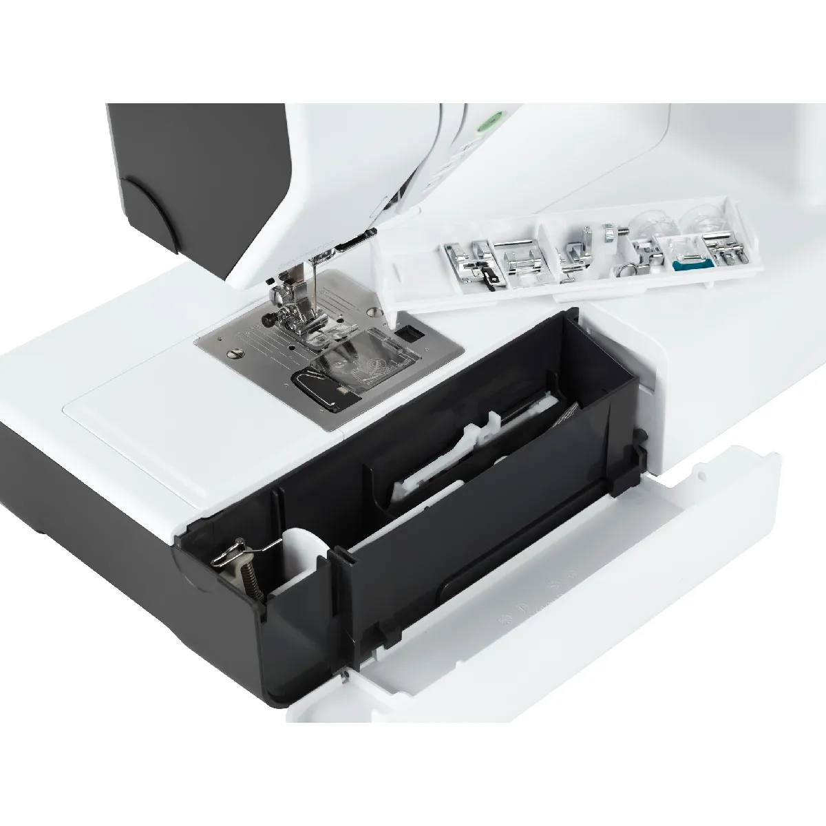 - Accessoires fournis : 8 semelles de pied-de-biche et grande table rallonge