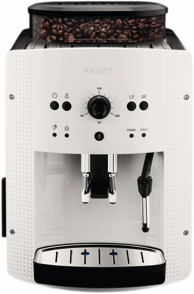 La préparation d'un espresso précis devient simple grâce au broyeur à café intégré et à la pression de 15 bars, pensés pour extraire des arômes constants tasse après tasse. Son réservoir d'eau de 1,6 L limite les remplissages fréquents pour une utilisation quotidienne. Le programme automatique de nettoyage facilite l'entretien régulier sans manipulations complexes. Avec sa puissance de 1450 W, la montée en température est rapide pour enchaîner les préparations. Le réservoir à grains de 275 g assure une autonomie confortable pour divers cafés en grains. En finition blanche et en plastique robuste facile à entretenir, elle s'intègre discrètement sur le plan de travail. Adaptée à une tasse, elle cible ceux qui désirent un espresso net et reproductible.