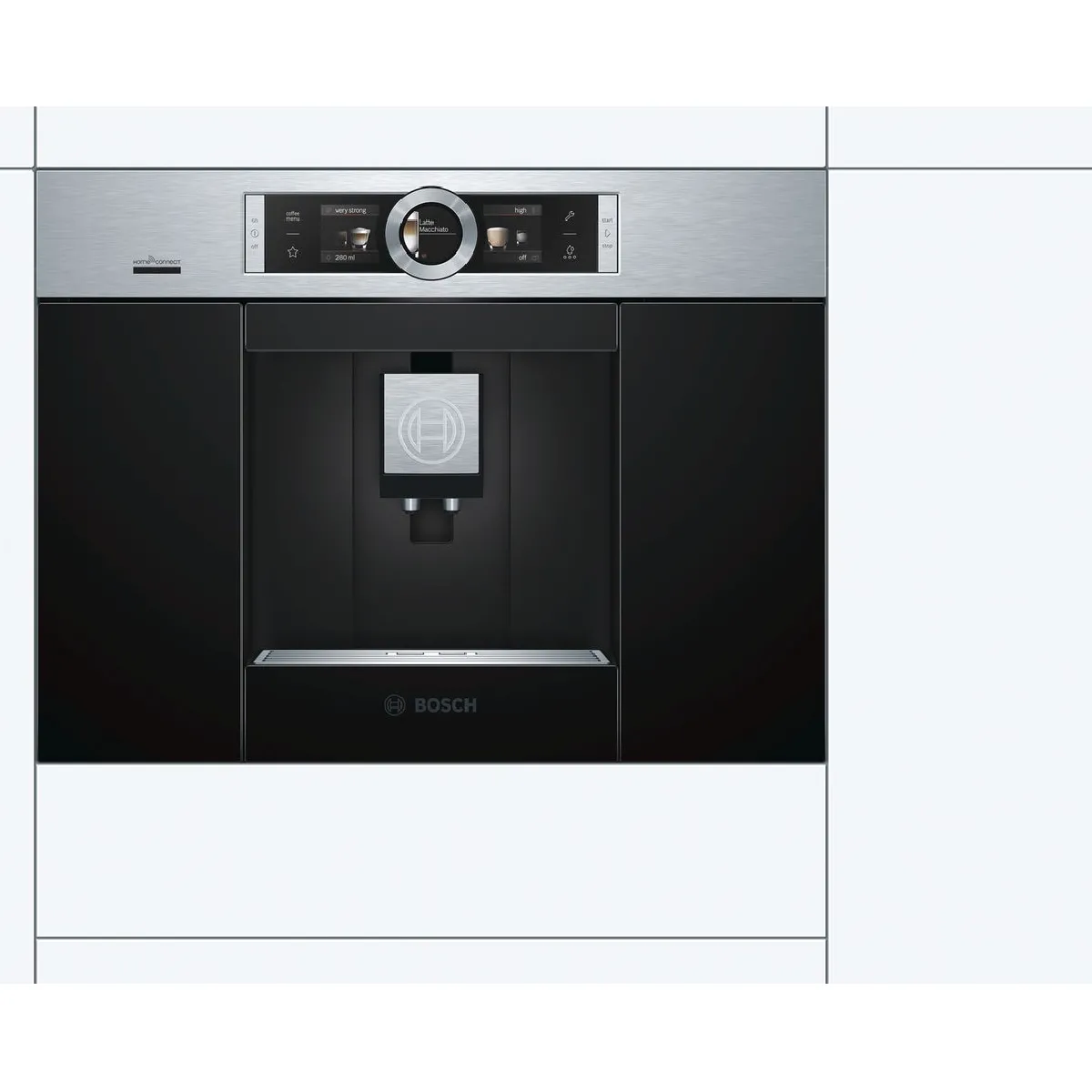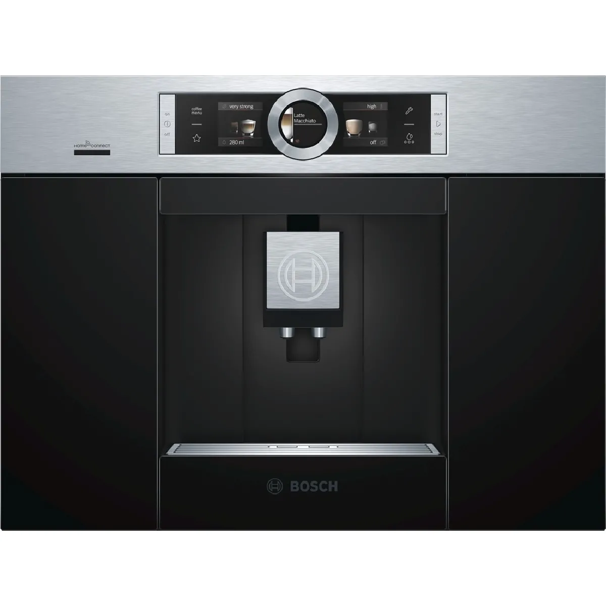 robot café expresso 19 bars encastrable inox - ctl636es6 - Le robot café expresso Serie 8 CTL636ES6 de Bosch est une machine à espresso encastrable full automatisée avec Home Connect : un large éventail et plus de confort.Chauffe-eau instantané : garantit un maximum d?arôme grâce à la température de percolation toujours idéale et constante.Une touche café duo : Préparation simultanée de 2 boissons en une seule touche.aromaDouble Shot: un café super fort avec teneur en substances amères réduite grâce à la double mouture et à la double percolation.Home Connect : des électroménagers à connectivité intelligente pour vous simplifier la vie.AutoMilk Clean : un nettoyage à la vapeur entièrement automatique après chaque boisson pour un entretien quotidien du système d?écoulement du lait.