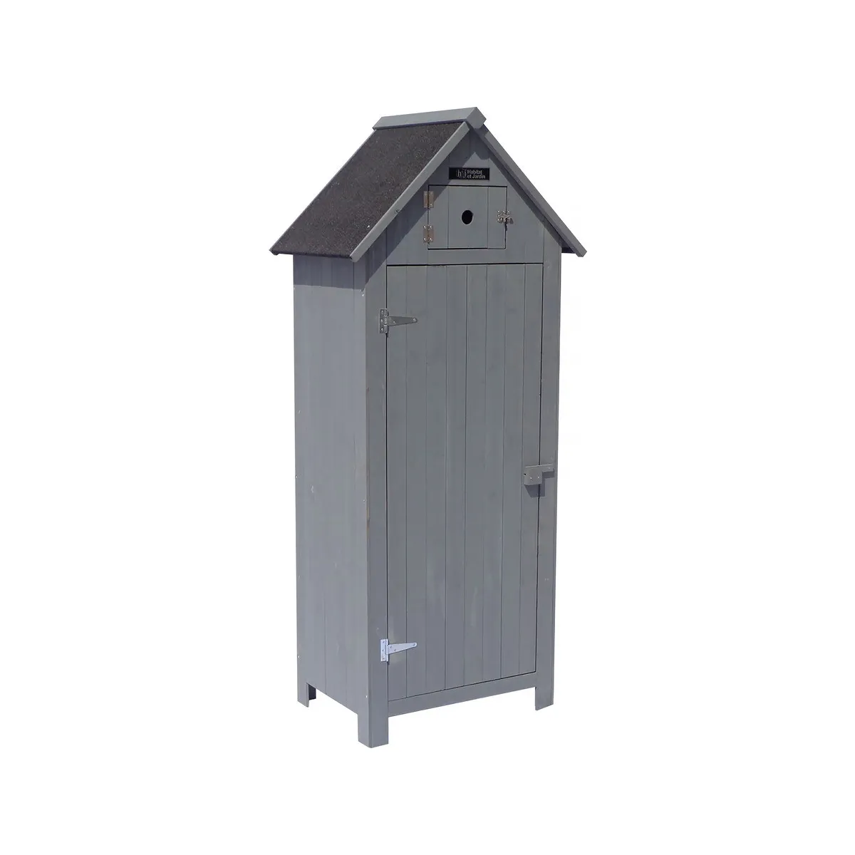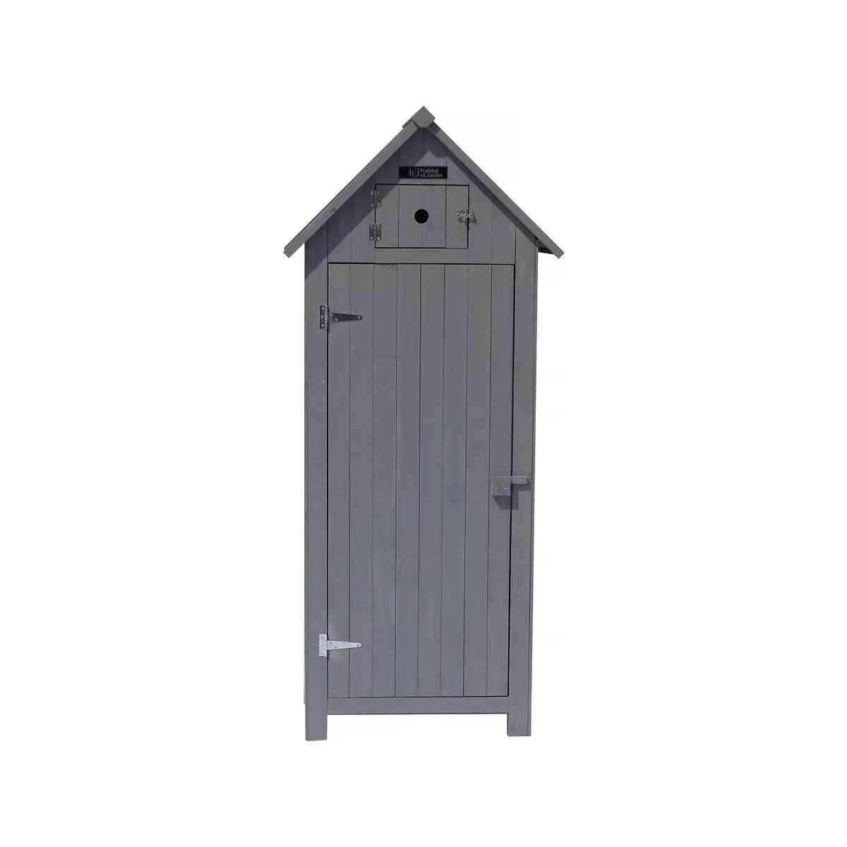 Une armoire pleine de promessesUn rangement pratiqueUne armoire de jardin idéale pour ranger votre matériel de jardinage.Composée d'une porte simple derrière laquelle se trouve un grand espace de rangement, l'armoire de rangement de jardin Cabanon, est un abri de jardin bien pratique.Conçue pour résister à la pluie, cette armoire de jardin préserve au sec toutes vos affaires, tout au long de l'année.Ainsi, elle vous sera bien utile pour ranger rateaux, pelles, balais etc...De plus et pour optimiser l'espace, l'armoire Cabanon vous propose également 3 petites étagères qui se révéleront parfaites pour entreposer des bacs de rangements et des petits outils.Une armoire pleine de charmeCette armoire de rangement fabriqué en bois de sapin est dotée d'un design original.Sa toiture à deux pans lui donne un véritable petit charme, qui la distingue des armoires classiques à la toiture à plat.Avec son style bien à elle, cette armoire de jardin emprunte les codes du petit cabanon ou de la petite maisonnette et apporte une touche d'originalité dans votre jardin.Enfin, sous sa toiture se trouve un agréable et pratique petit espace de rangement, verrouillable à l'aide d'un loquet, dans lequel vous pourrez déposer quelques petits objets.L'armoire de jardin Cabanon est autant un mobilier fonctionnel et pratique qu'un meuble de décoration ! Armoire de jardin "Cabanon" - En bois de sapin naturel - 77 x 54.5 x 179 cm - Résistant à la pluie - AnthraciteDimensions internes : 63 x 42 x 124.5 cm .Descriptif: - Armoire de jardin type cabanon/maisonnette - Design original - Fabriquée en bois (sapin) - Toiture en double pente - Petit loquet en bois sur la porte principale - Espace de rangement à part sous toiture - avec loquet - 3 étagères latérales