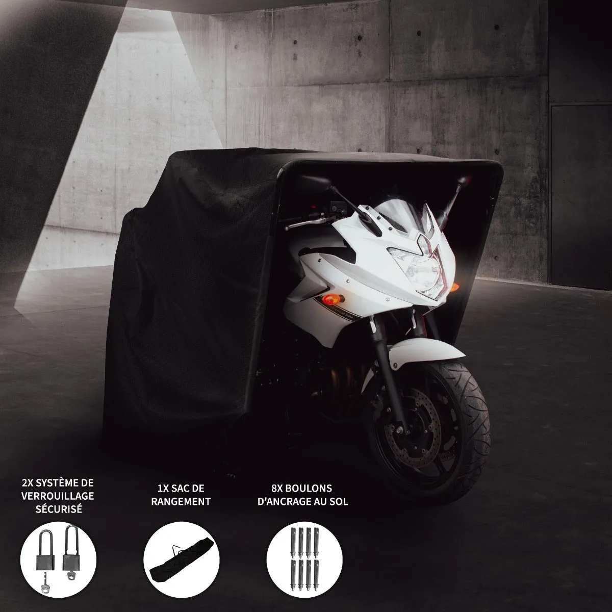 Tente de protection pour moto - Structure en acier - Housse en tissu Oxford - Imperméable et anti-UV