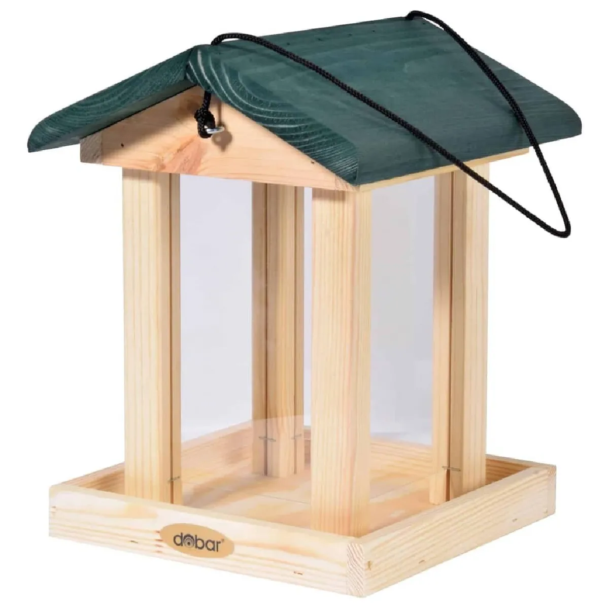 Mangeoire en bois de pin résistant - Silo protégé par vitres acrylique - Remplissage facile