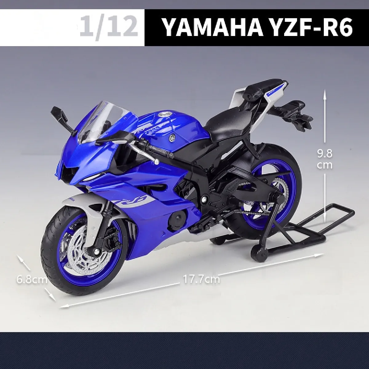 Idéale pour une vitrine ou un bureau, cette reproduction de la Yamaha YZF-R6 à l'échelle 1/12 combine une finition soignée et des proportions fidèles. La construction mêle alliage et plastique pour un rendu solide tout en restant légère à manipuler. Les lignes de carénage et les éléments mécaniques sont travaillés pour refléter l'allure sportive du modèle réel, avec une peinture noire homogène qui souligne la silhouette. Destinée à un public adulte, elle convient aux amateurs de deux-roues qui recherchent une pièce simple à exposer et agréable à observer.