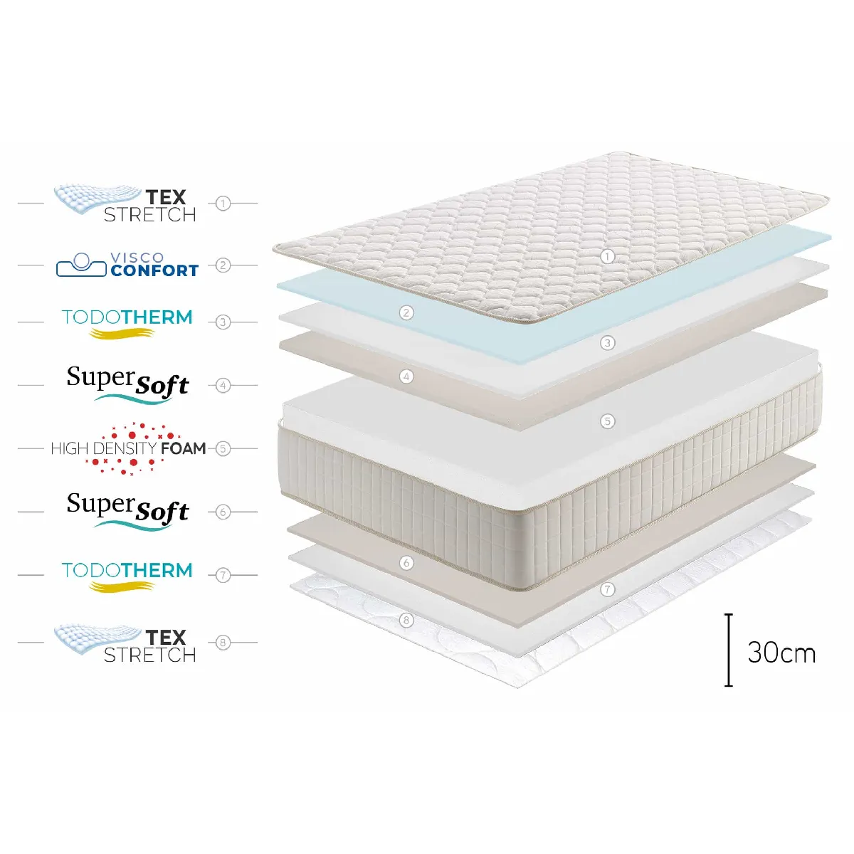 En outre, le viscoélastique favorise un posture ergonomique durant le sommeil et régule la température plus efficacement que du viscoélastique traditionnel. La la haute qualité des matériaux qui composent ce matelas, assure un maintien optimal des conditions et avantages de cet équipement de literie.