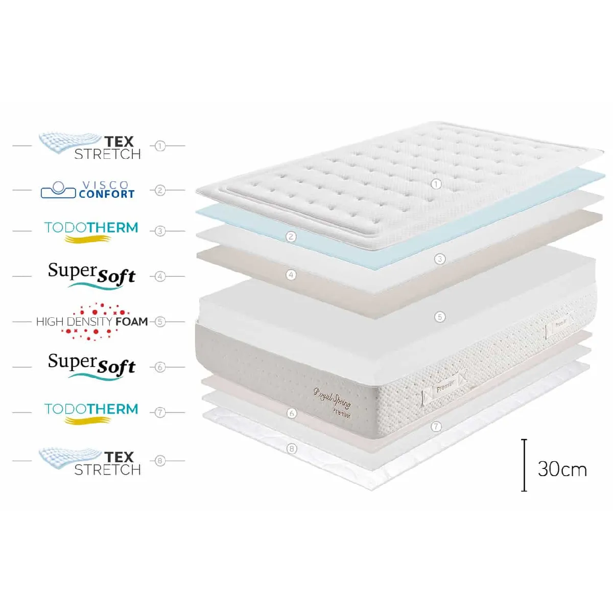 Matelas Mousse à memoire de forme Royal Spring Premier HR 30, 160x200cm - Moonia