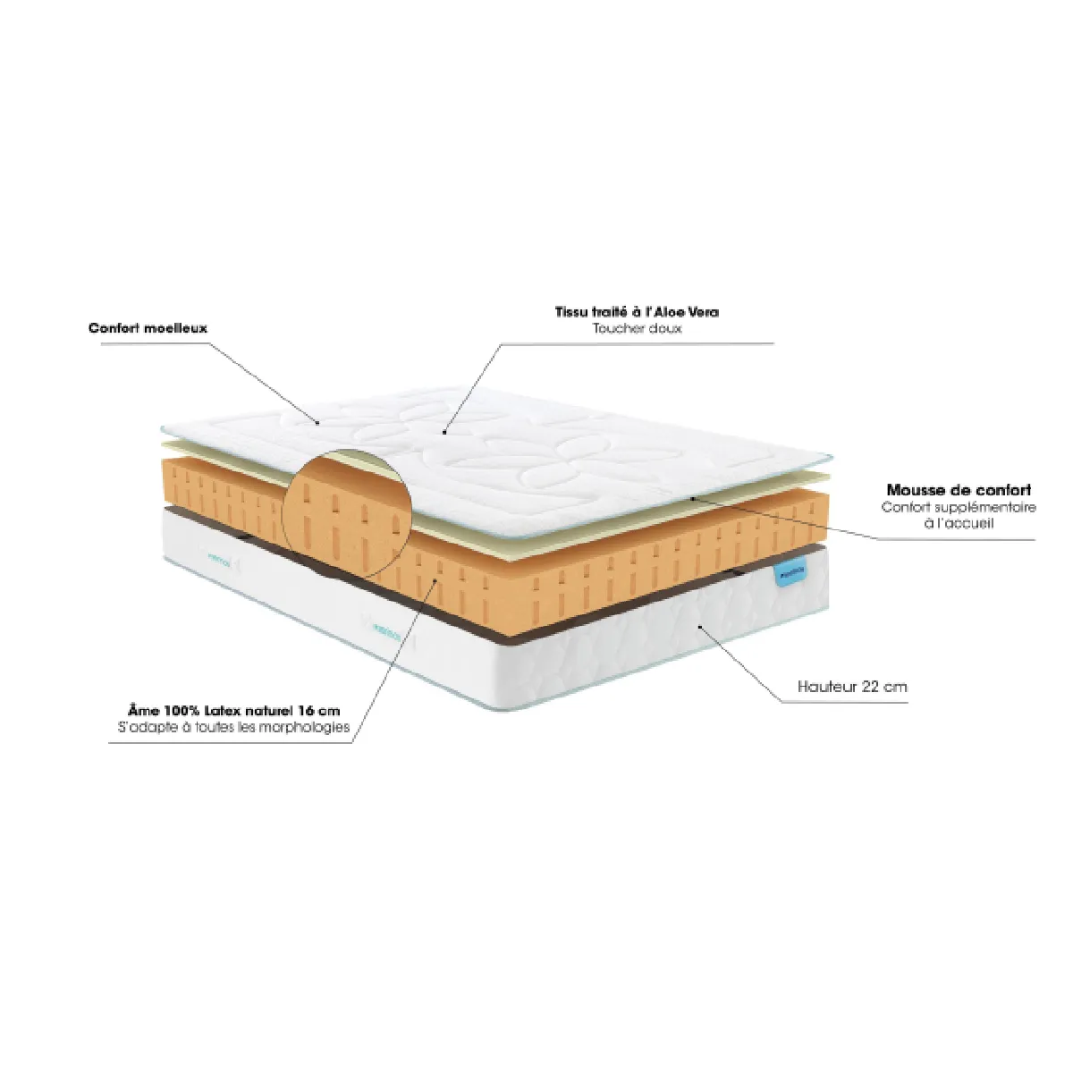 Technologie : Âme 100% Latex naturel de 16 cm et d'une densité de 90 kg/m3