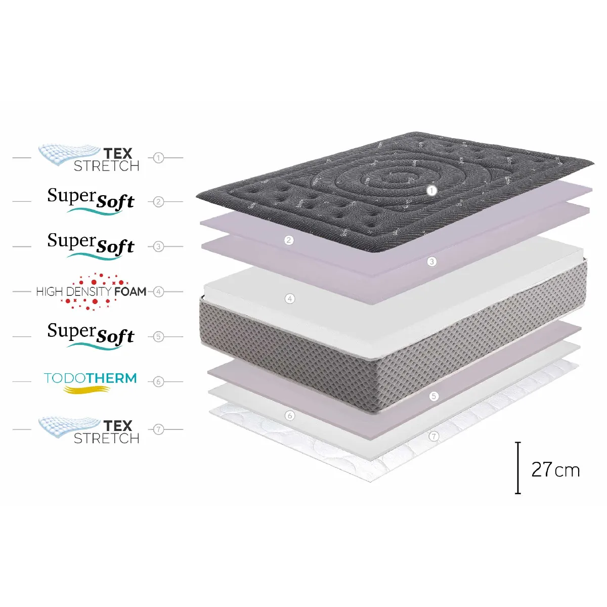 Matelas Mousse Premium Black Multizone, 27cm, 150x190cm - Moonia