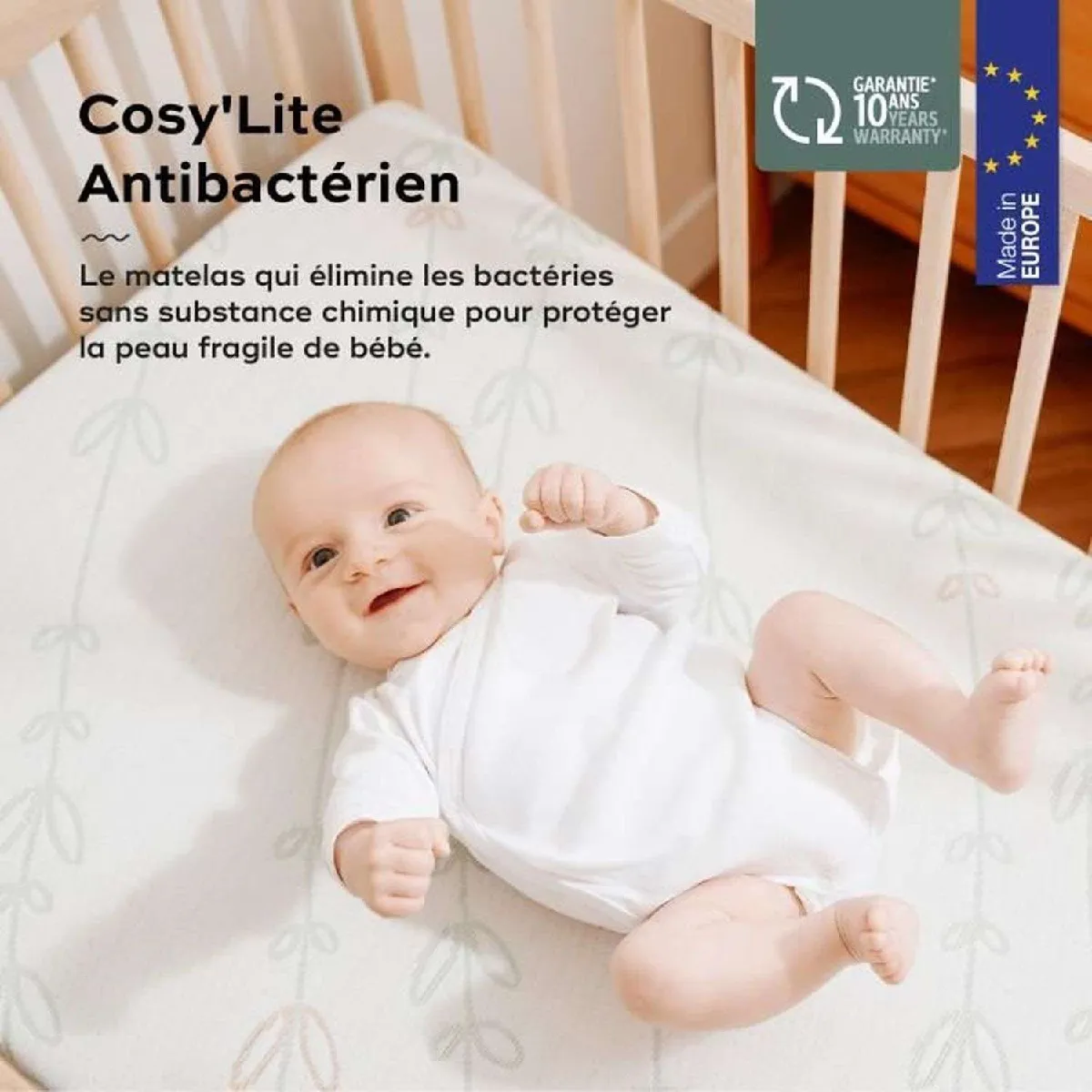 Ce matelas en mousse de confort est idéal pour les bébés grâce à sa technologie de mousse confort qui s'adapte parfaitement à leur morphologie. Il est également hypoallergénique pour une protection contre les acariens, ce qui en fait un choix sûr pour les peaux sensibles de bébé. De plus, il est certifié Tex pour une garantie de qualité et de sécurité.