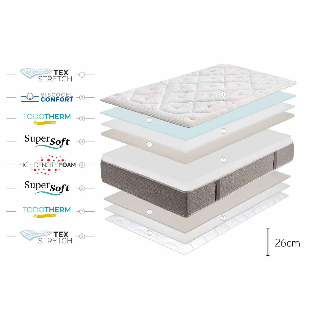 Le système du gel viscoélastique et des couches de supersoft combinés lui permet de se dilater et de répartir les zones de pression du corps pour obtenir un excellent repos.