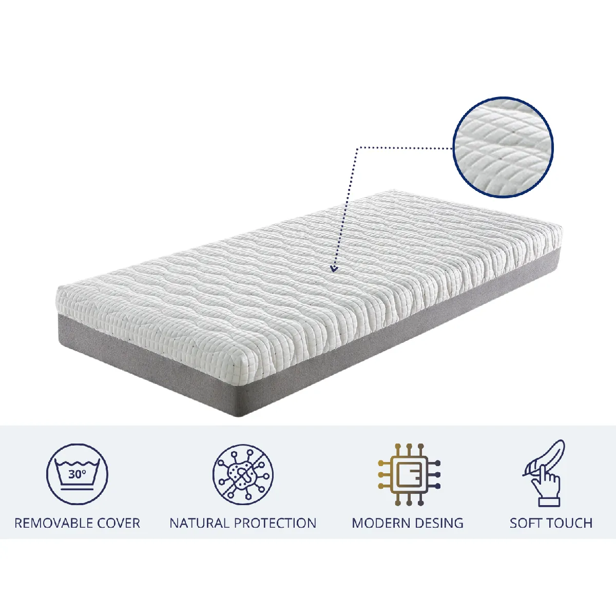 Maintenez une hygiène maximale grâce à son revêtement extérieur lavable en machine à 30 degrés.