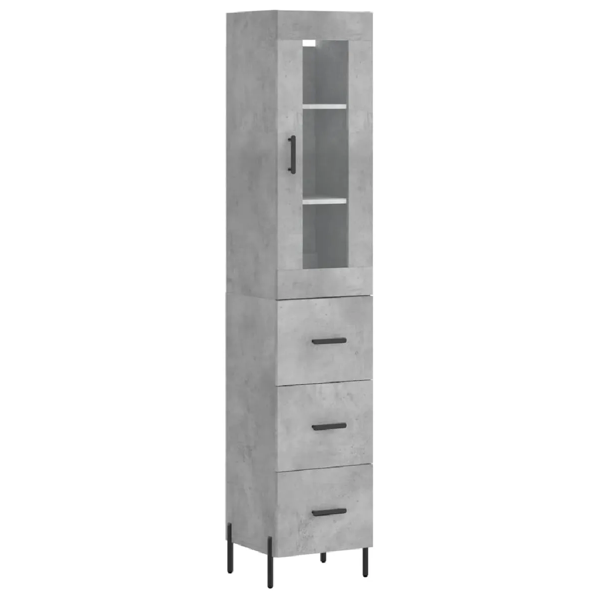 Buffet haut - Bois d'ingénierie, métal et verre - Grand espace - 34,5 x 34 x 180 cm