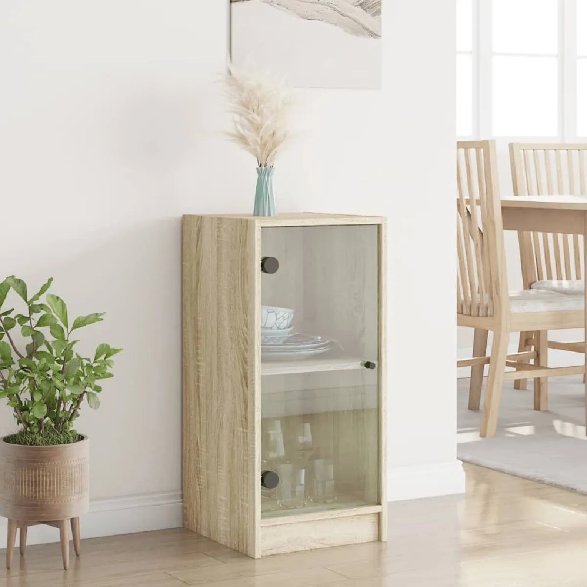 Armoire avec portes en verre - Bois d'ingénierie - Chêne sonoma - Dimensions : 35 x 37 x 75,5 cm