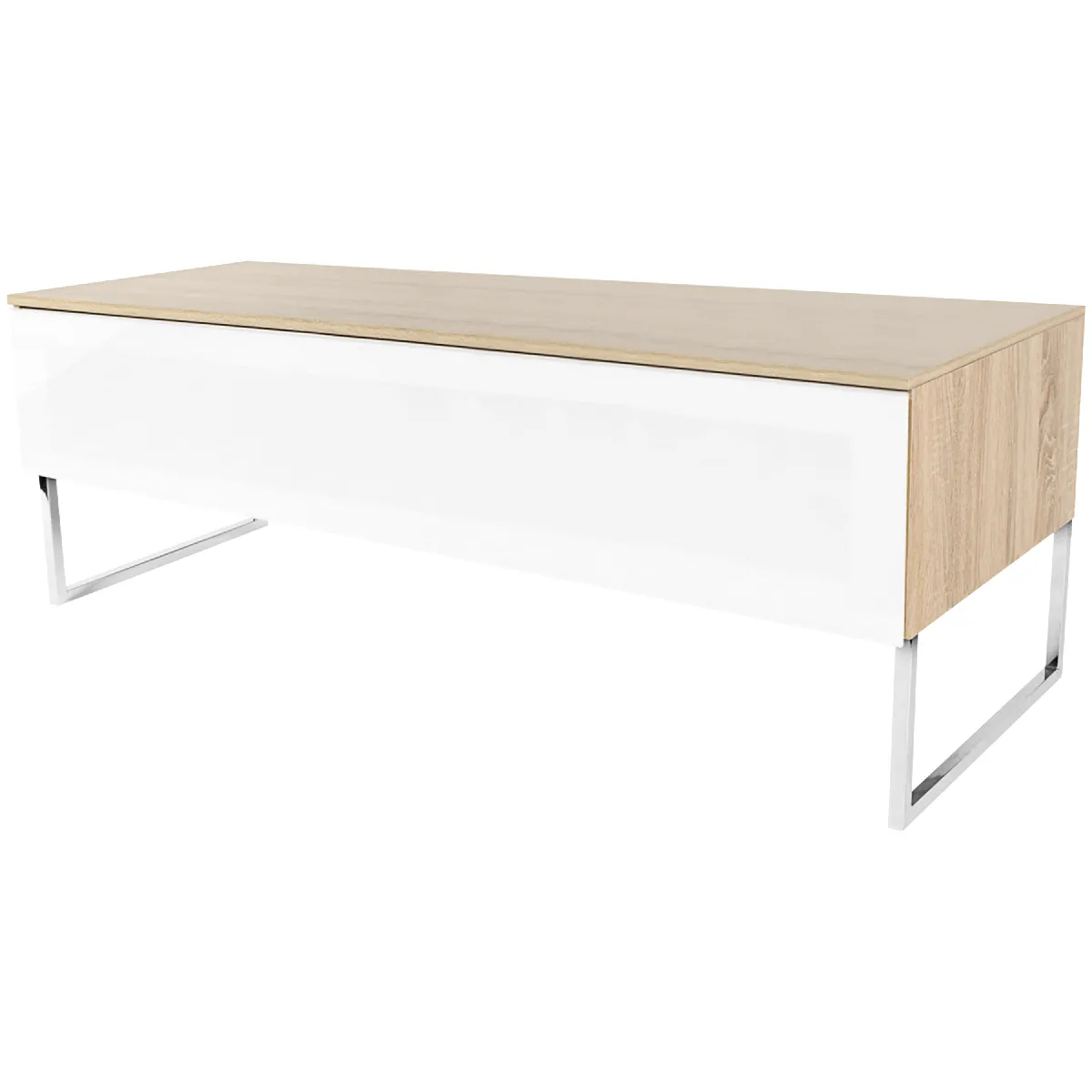 - Caisson en MDF laqué chêne et blanc pour une surface stable et facile d'entretien