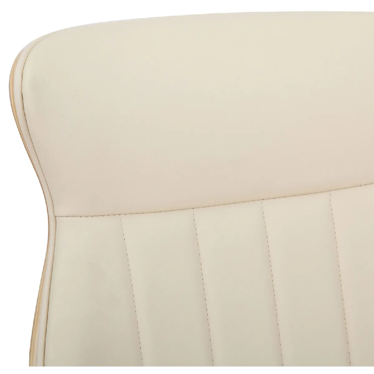 La combinaison d'un revêtement en cuir synthétique 100 % polyuréthane et d'un siège et dossier confortablement rembourrés offre un contact agréable et un entretien simple au quotidien. La hauteur d'assise réglable de 45 à 53 cm aide à obtenir un alignement ergonomique avec le plan de travail et l'écran. Le dossier haut de 63 cm soutient le dos sur toute la longueur, limitant les points de pression lors des tâches prolongées. La structure en bois courbé apporte rigidité et stabilité, tandis que le cadre en aluminium renforce la durabilité de l'ensemble.