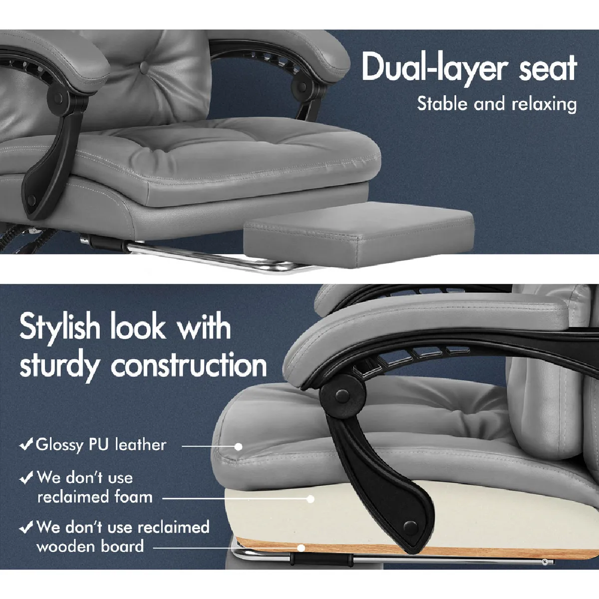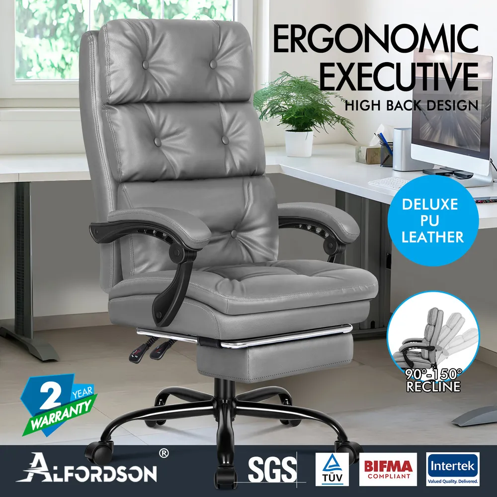 Chaise de bureau ALFORDSON Gris, avec repose-pieds rétractable