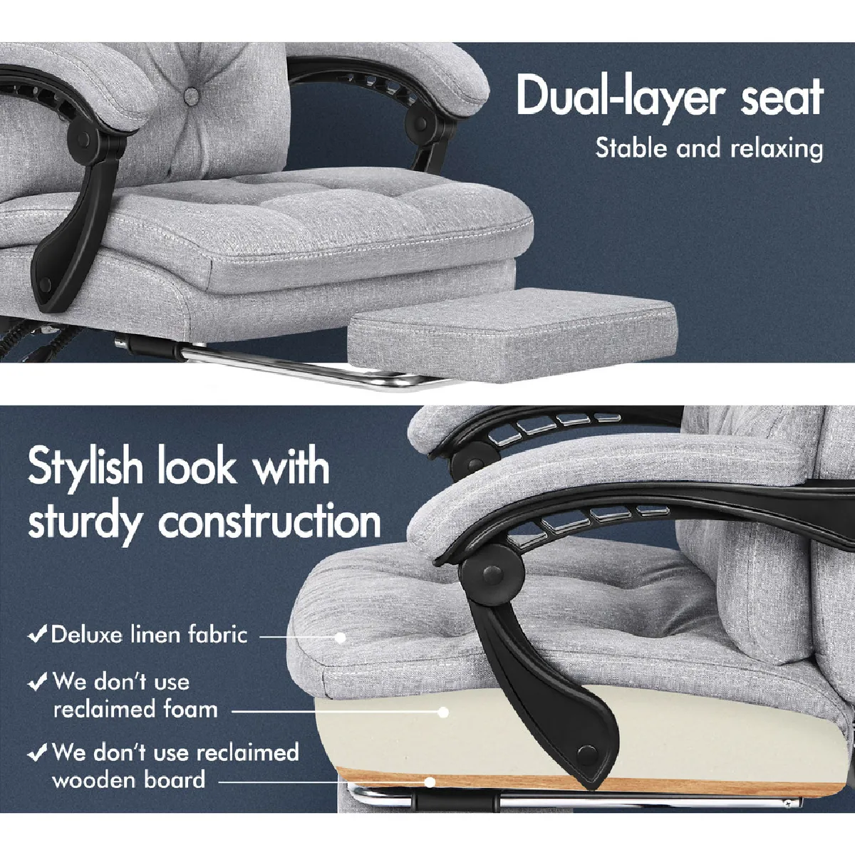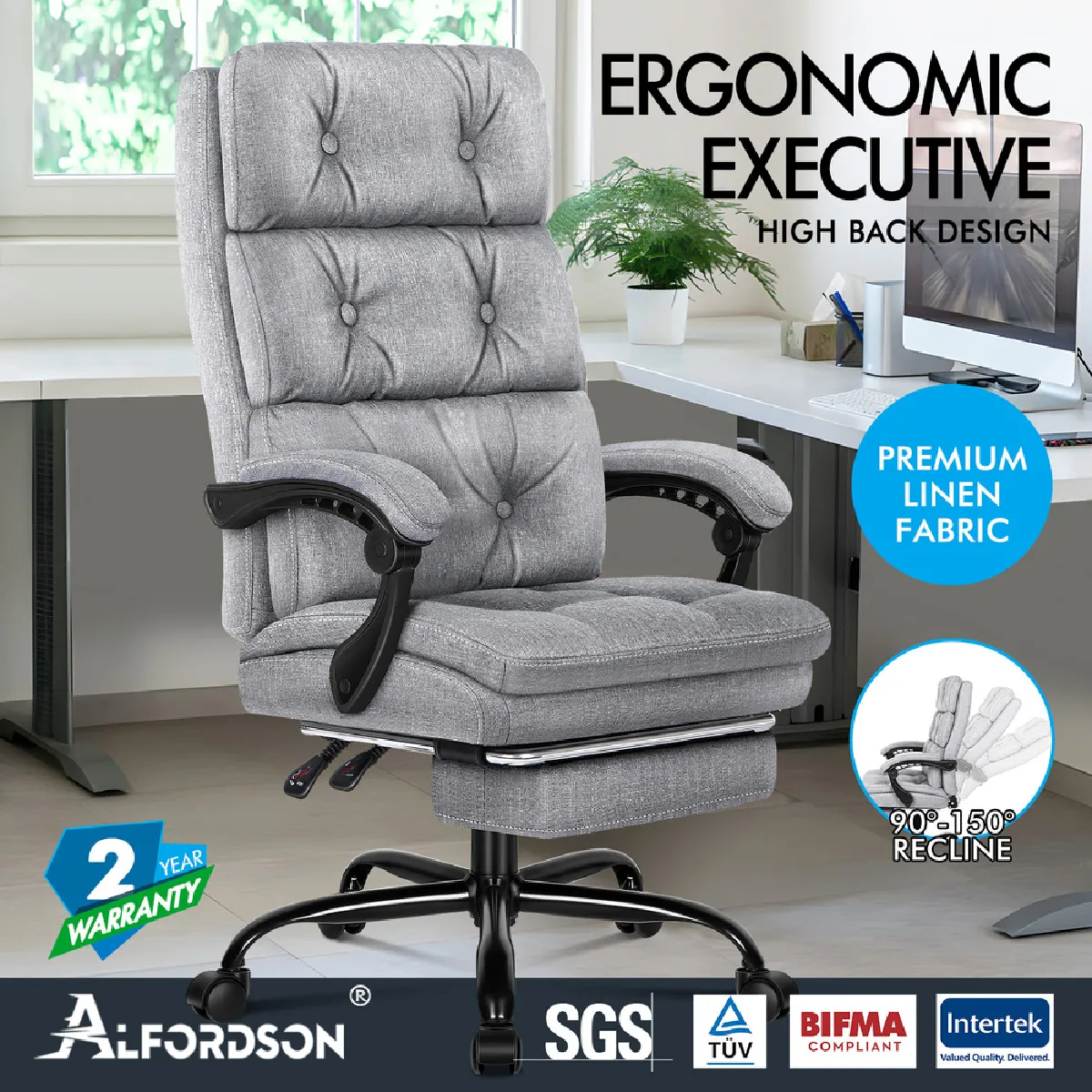 La chaise de bureau d'ordinateur Alfordson est un modèle éternel. Il est doté d'un dossier à double couche avec de luxueux rembourrages en mousse, pour vous assurer de pouvoir vous faire plaisir à chaque fois que vous êtes assis dessus. Fabriqué avectissu en lin respirant et durable, ce fauteuil inclinable moderne améliore également l'atmosphère de la pièce dans laquelle il se trouve. Une élite en matière de qualité et de design, votre solution au vrai confort.