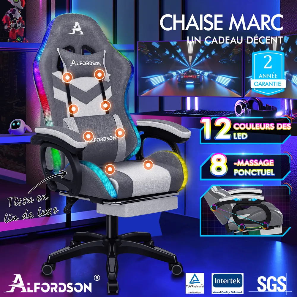 Pensée pour supporter des usages intensifs, la structure accepte jusqu'à 180 kg de charge pour une fiabilité accrue au quotidien. Les finitions en tissu gris et noir s'intègrent facilement aux configurations gaming comme aux espaces polyvalents. L'ensemble vise un équilibre entre maintien et souplesse, afin d'enchaîner travail, jeu ou visionnage dans de bonnes conditions, avec un réglage d'inclinaison simple à utiliser selon la tâche ou la durée d'utilisation.
