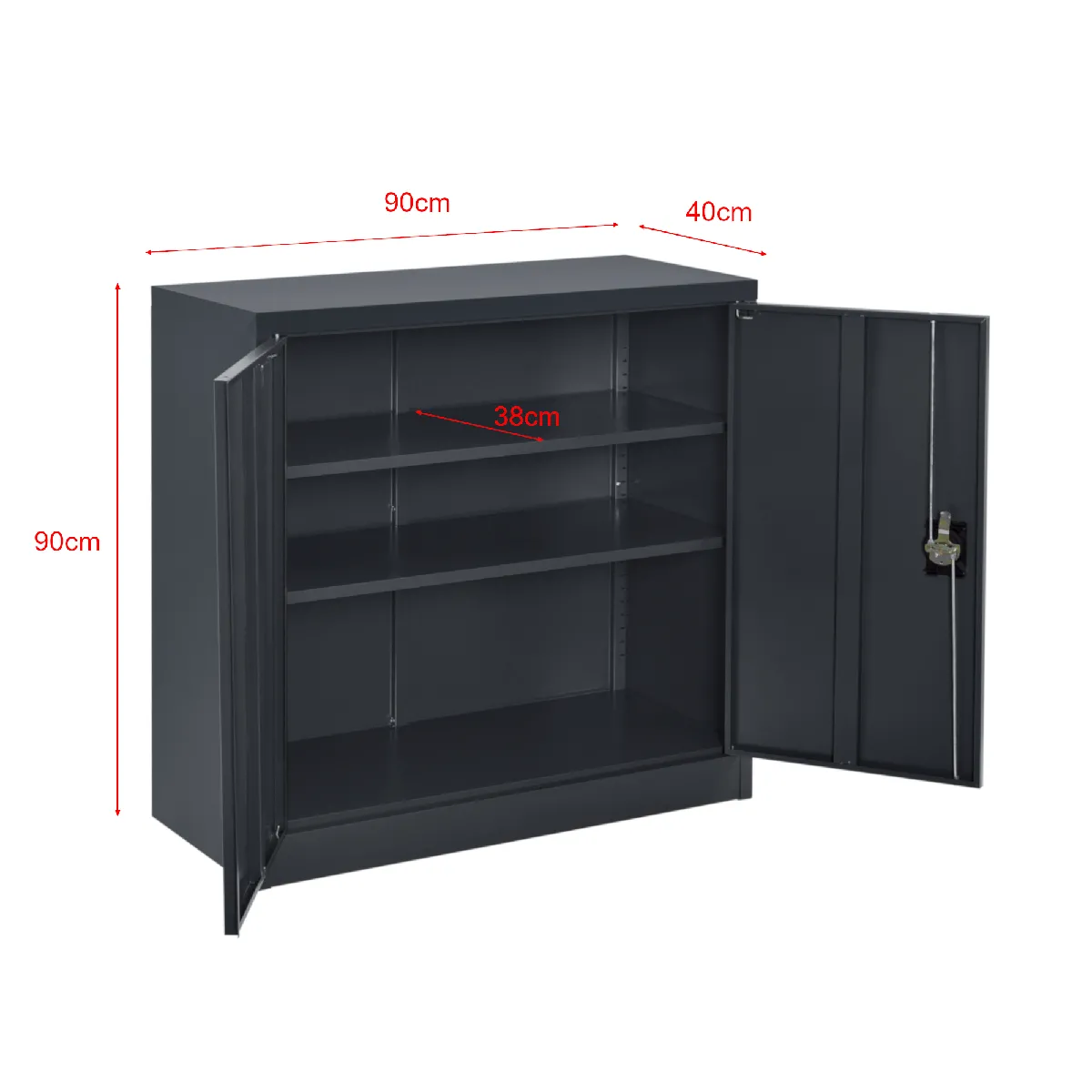 La fabrication en acier laqué résistant assure une tenue rigide pour un usage quotidien. Les deux étagères réglables aident à structurer l'intérieur selon la hauteur des contenus, afin d'accueillir classeurs, livres et fournitures sans perte d'espace. Les dimensions maîtrisées facilitent le positionnement dans des zones étroites tout en préservant des volumes utiles. La finition gris foncé propose une intégration discrète dans des postes de travail et zones d'archivage, avec une surface facile à entretenir.