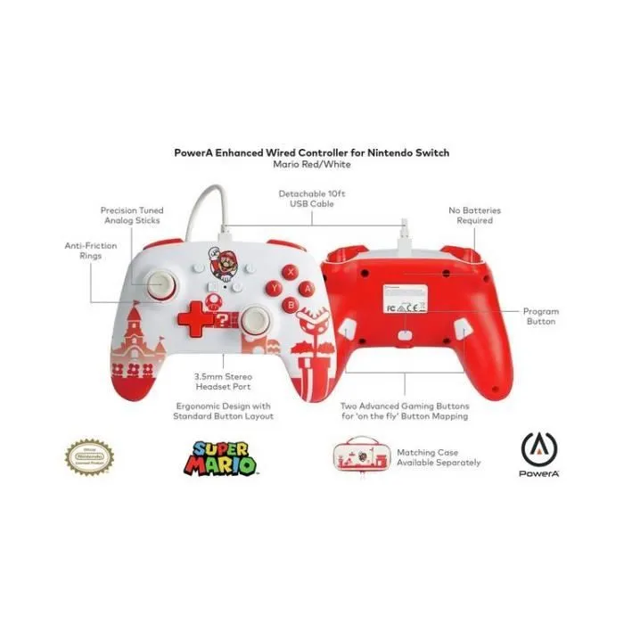 La restitution sonore met en valeur les effets et dialogues grâce à des haut-parleurs de 50 mm, utiles pour situer clairement l'action en jeu. Le confort est assuré par un arceau ajustable rembourré et des coussinets circum-auraux en simili cuir, adaptés aux longues sessions. Le microphone omnidirectionnel rétractable capte la voix avec précision pour des échanges naturels. Une télécommande filaire avec volume et coupure micro facilite les réglages à la volée. La connexion jack 3,5 mm stéréo offre une compatibilité simple avec Nintendo Switch et d'autres plateformes prises en charge. Conçu en version Rouge, cet accessoire officiel s'intègre facilement à un setup de jeu sans ajouter de complexité.