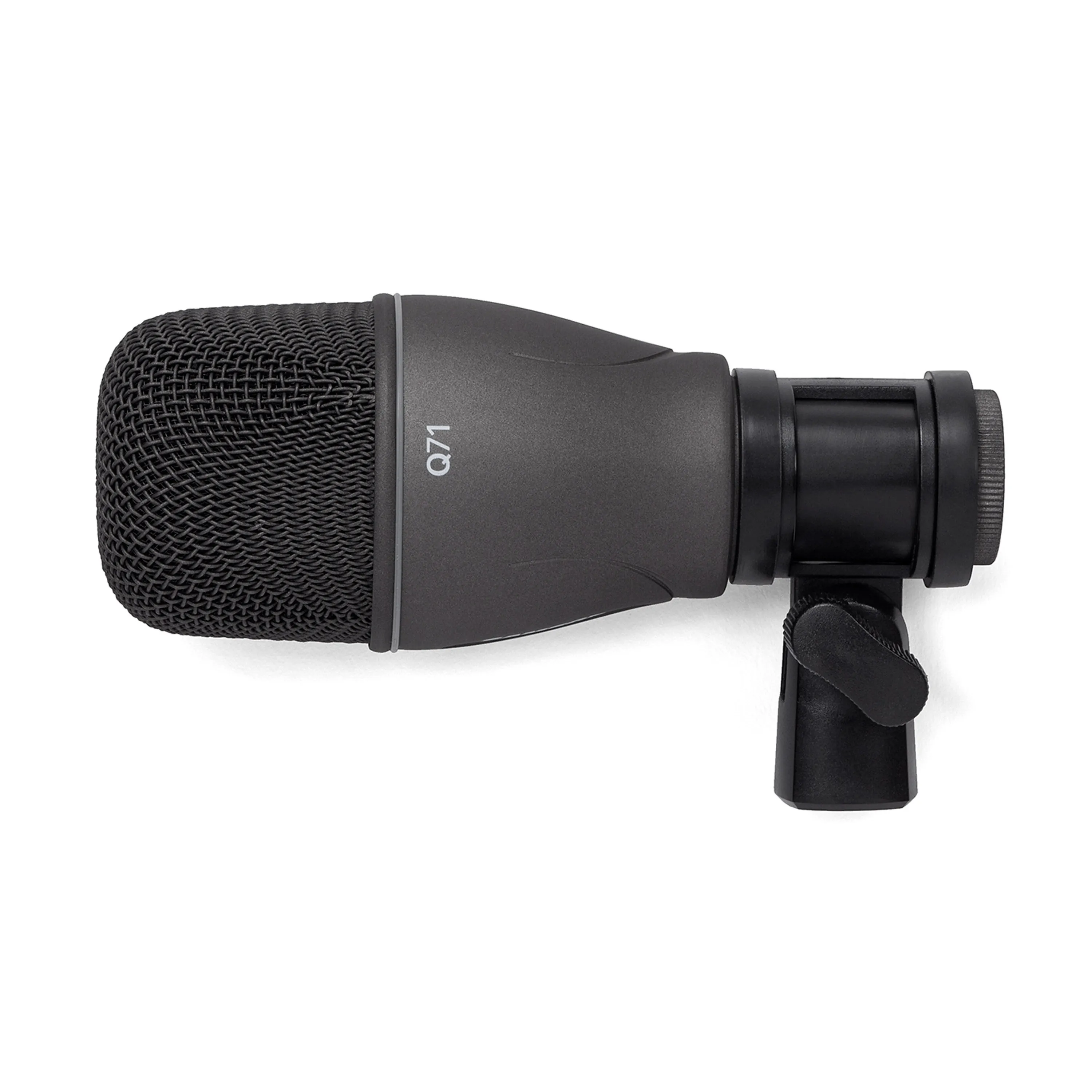 Le DK707 réunit des microphones optimisés pour les principaux éléments de la batterie, avec des dynamiques destinés à la transcription de l'attaque des fûts et la gestion de niveaux SPL élevés. Les deux C02, de type condensateur, se placent en overhead pour capter le détail des cymbales et l'air du kit, assurant une image stéréo naturelle et un champ sonore équilibré. Cette répartition permet de limiter les repisses problématiques et de faciliter l'intégration dans un mix, que ce soit en répétition, en live ou en enregistrement multipiste.