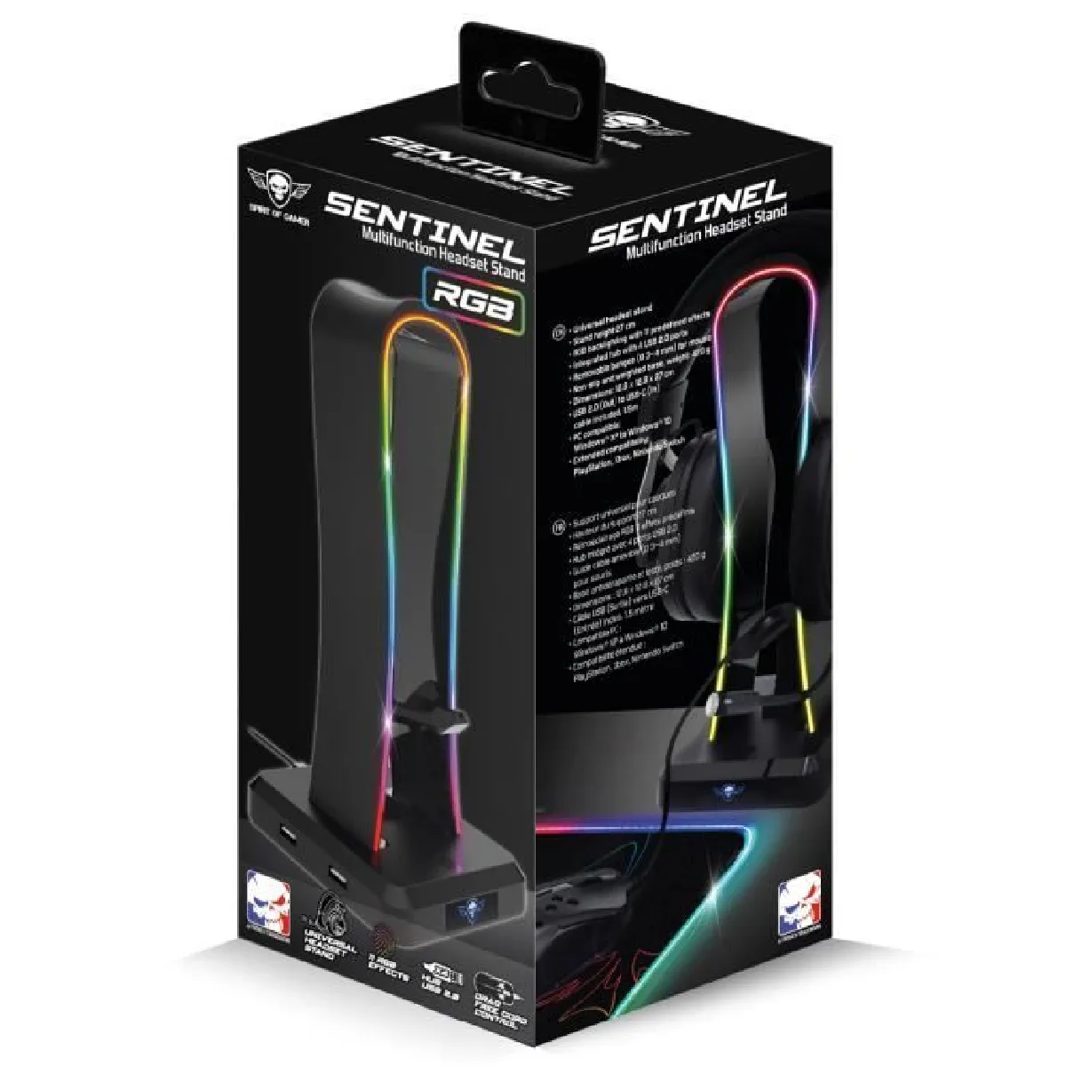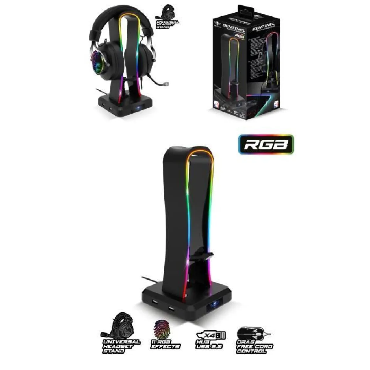 Support casque gamer - RGB 11 effets - hub 4x USB 2.0 - base antidérapante