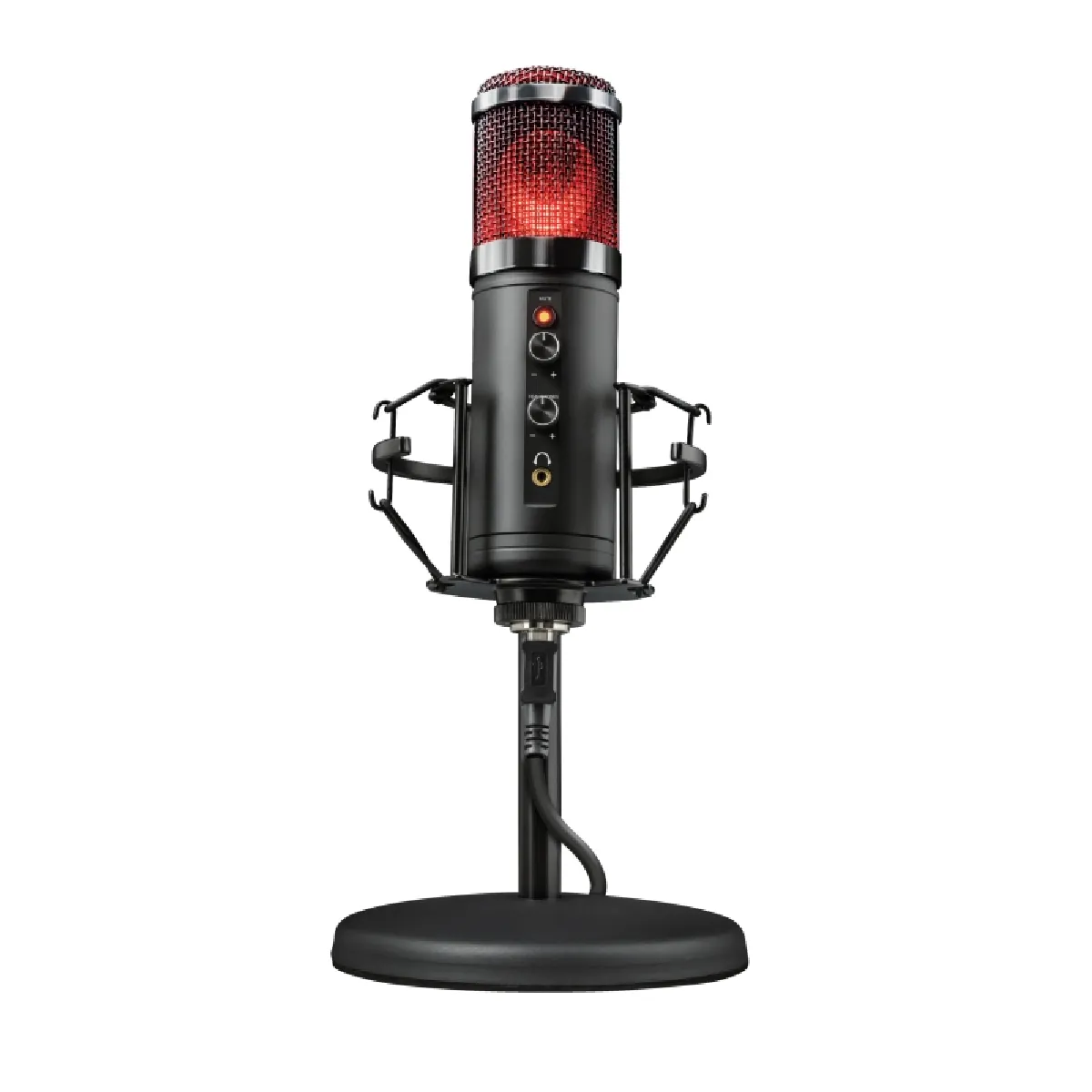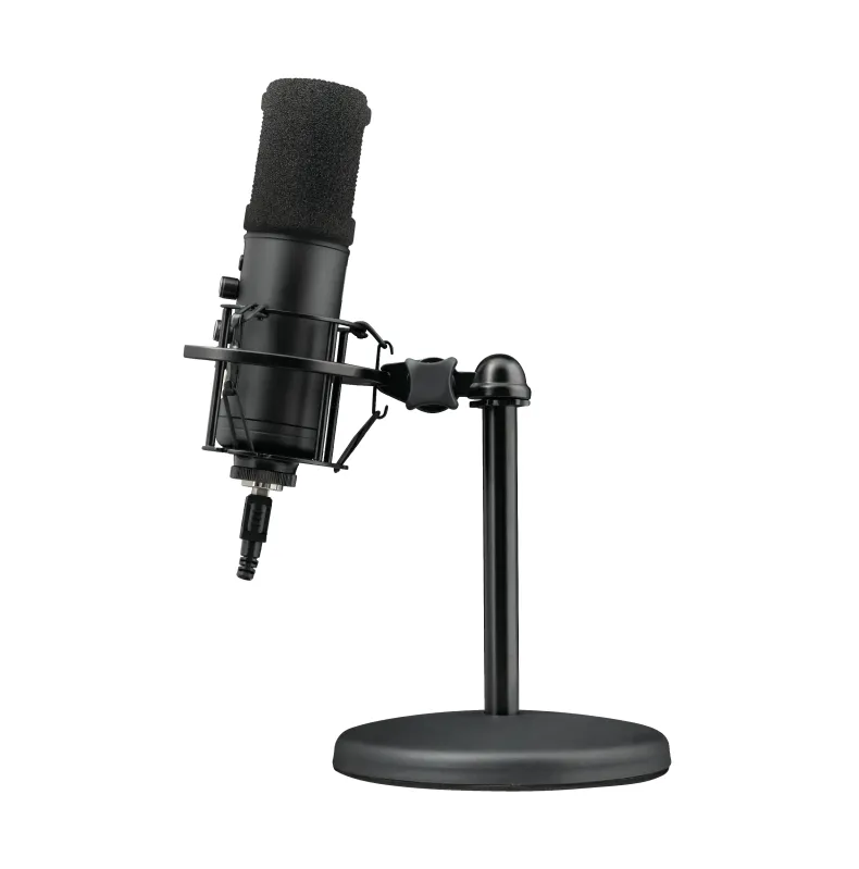 La structure en métal et le support antichoc haut de gamme limitent les vibrations de surface. Le filtre de grille agit comme anti-pop pour des consonnes mieux maîtrisées. L'angle du micro est ajustable, tandis que le pied lesté en métal assure la stabilité sur le bureau. Un pas de vis universel 5/8'' autorise la fixation sur de nombreux bras de microphone. Le câble USB détachable de 1,8 m facilite le positionnement optimal sur l'espace de travail.