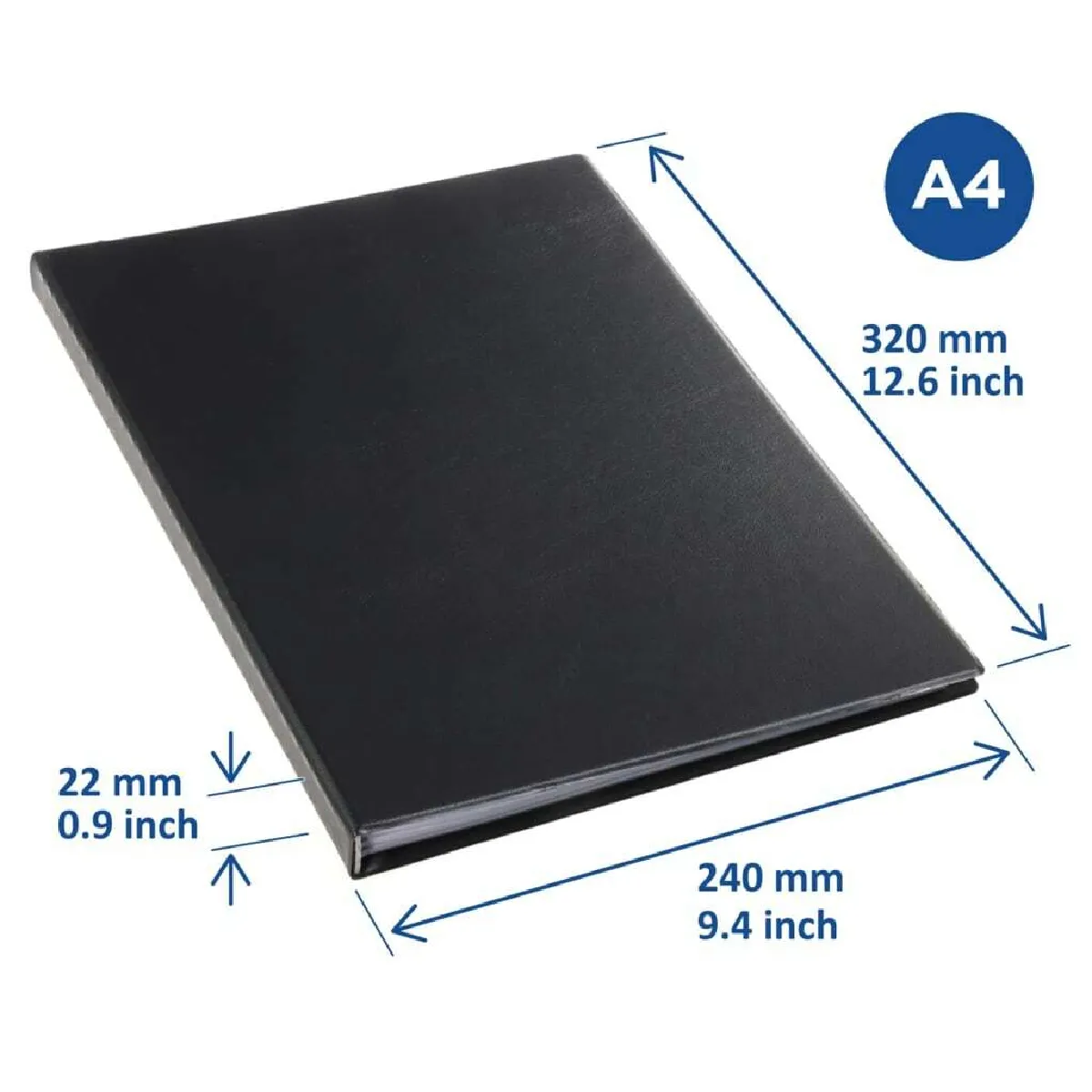 Le dossier de présentation A4 avec 40 poches de la marque rillstab est le support de portefeuille idéal pour les salons professionnels, la présentation d'ateliers, l'affichage de la littérature, les sessions de formation, l'affichage du catalogue de produits, les revues de vente et de marketing ainsi que les présentations de projets. Les couvertures avant et arrière noires de ce portefeuille sont en plastique robuste, tandis que les pochettes intérieures sont en polypropylène transparent et antireflet pour une excellente visibilité. Que vous créiez un petit catalogue de produits ou que vous partagiez des informations de présentation dans un format facile à lire, ce livret de présentation vous permet de présenter les informations à vos clients de manière simple et professionnelle. Protégez, organisez, affichez et présentez : ce dossier de présentation à 40 pochettes est idéal pour la maison, l'école, les entreprises, les bureaux et pour la présentation d'art et les présentations de projets.Couvertures avant et arrière robustes : les couvertures robustes sont suffisamment durables pour protéger vos documents contre les plis.Sécurité garantie : les pochettes offrent également une protection à long terme de vos documents contre les éclaboussures et les taches.Pratique et pratique : le livre de présentation fonctionne comme un classeur à anneaux, mais ne pèse pas comme un. Il repose complètement à plat sur la surface; vous pouvez tourner les pages comme un livre. Vous pouvez classer et organiser les documents sans perforation.Taille parfaite : épais, mais léger et portable, le livre de portefeuille rillstab peut être transporté n'importe où.